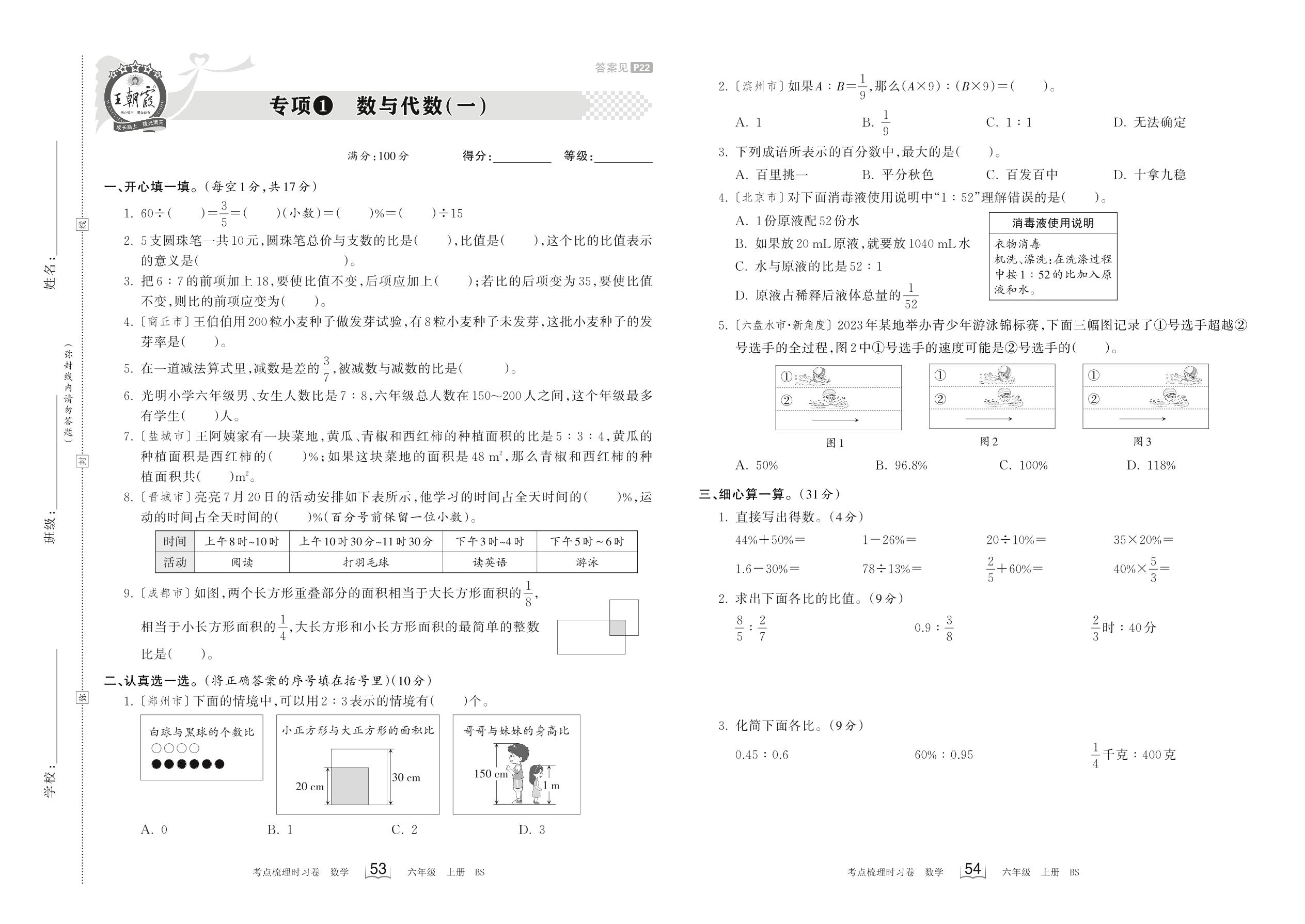 2023上册六年级数学北师版 专项1 数与代数(一)