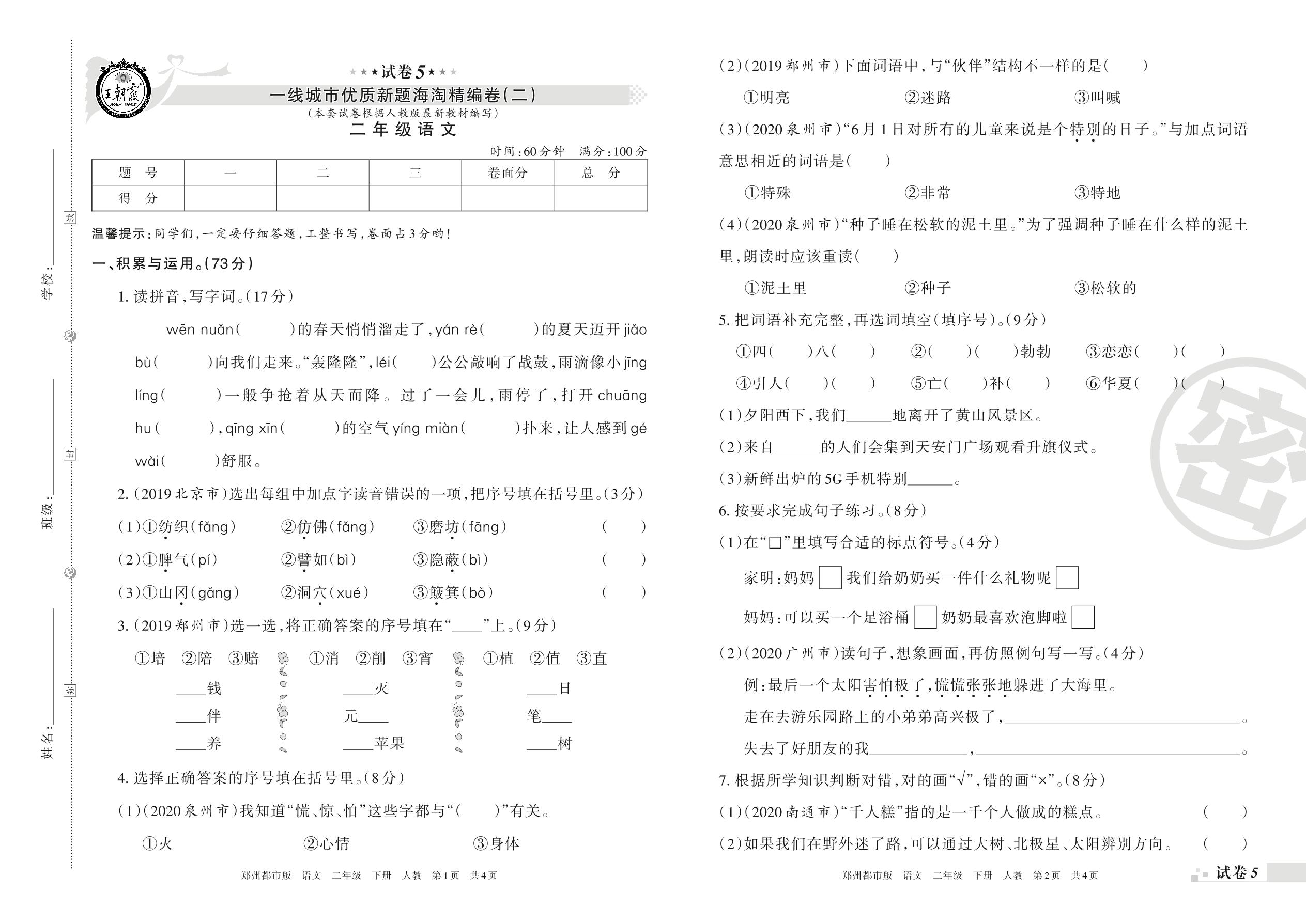 王朝霞海淘期末精编卷二年级下册语文(人教版)_R21080163026【5】