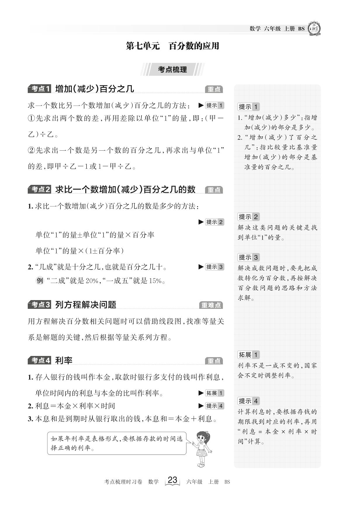 2023上册六年级数学北师版 考点梳理手册——第七单元 百分数的应用