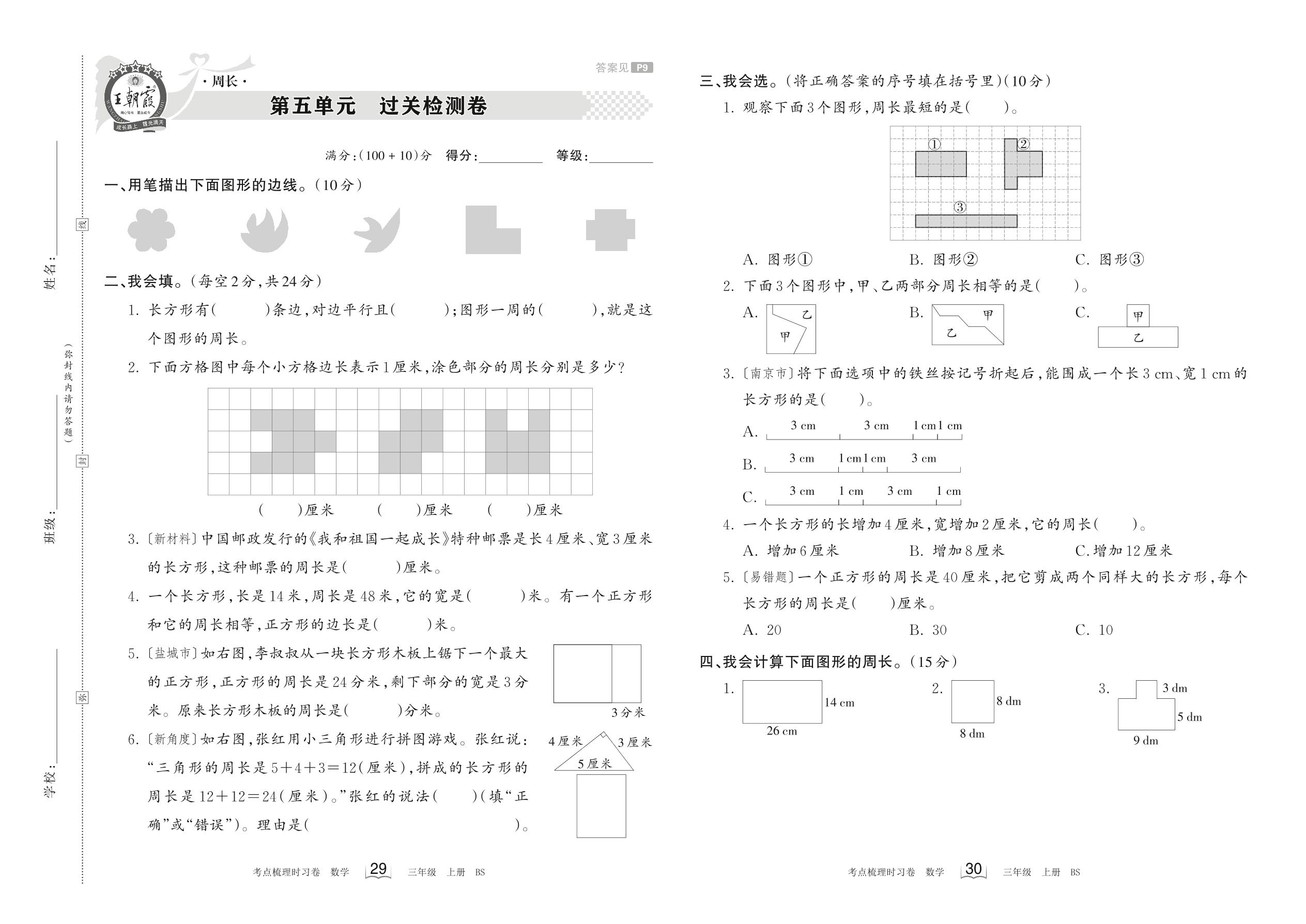 2023上册三年级数学北师版 第五单元 过关检测卷