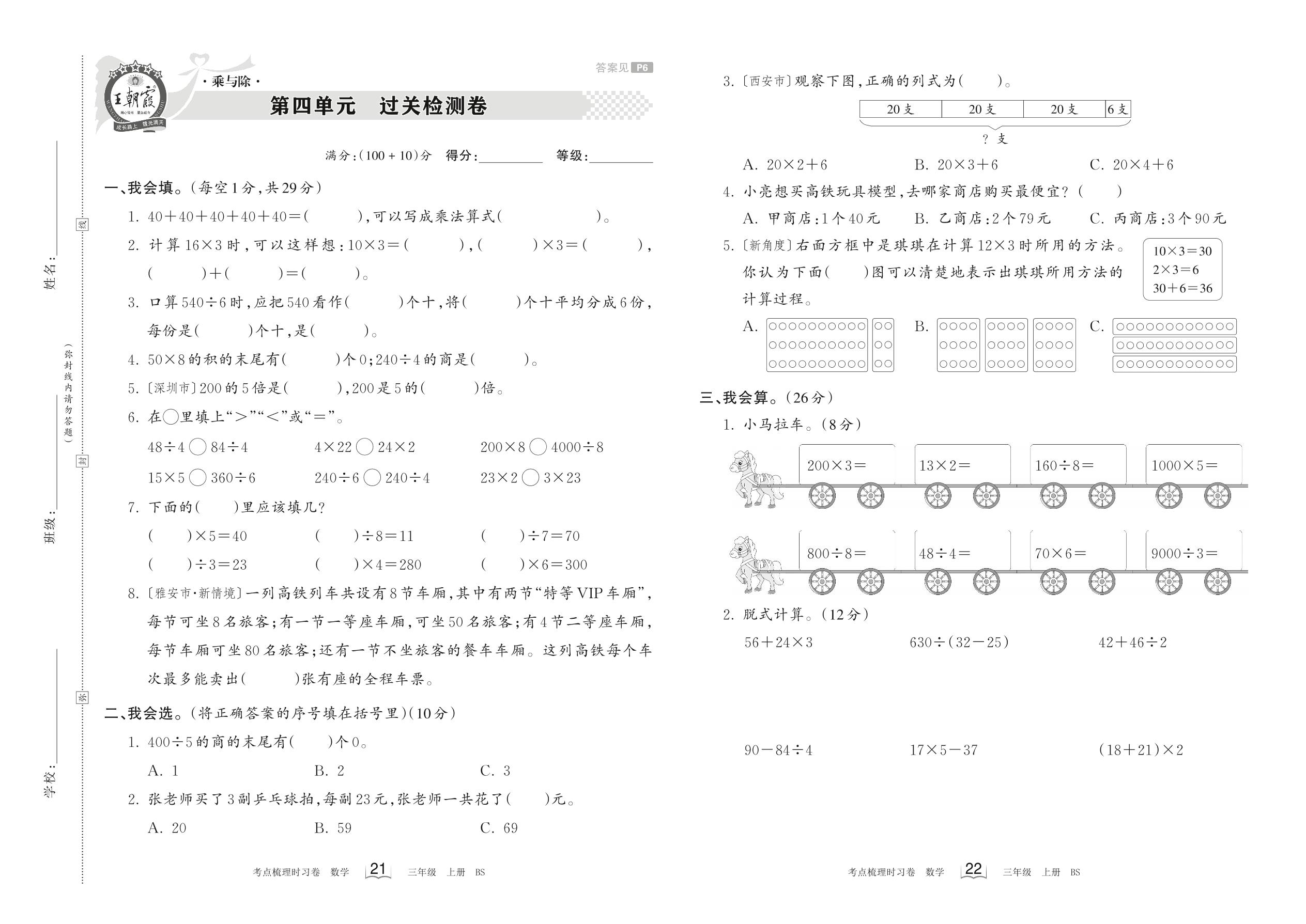 2023上册三年级数学北师版 第四单元 过关检测卷