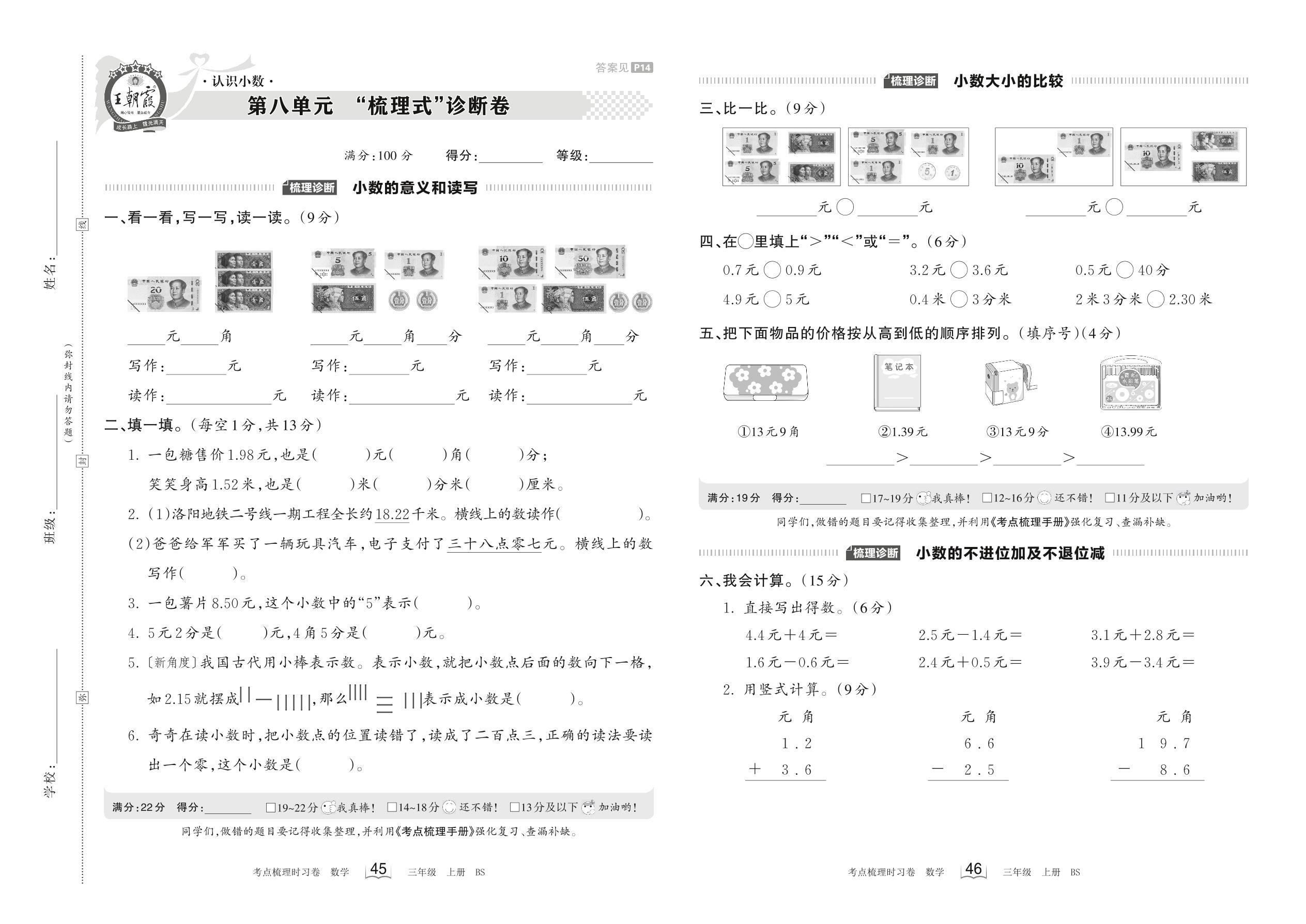 2023上册三年级数学北师版 第八单元 “梳理式”诊断卷