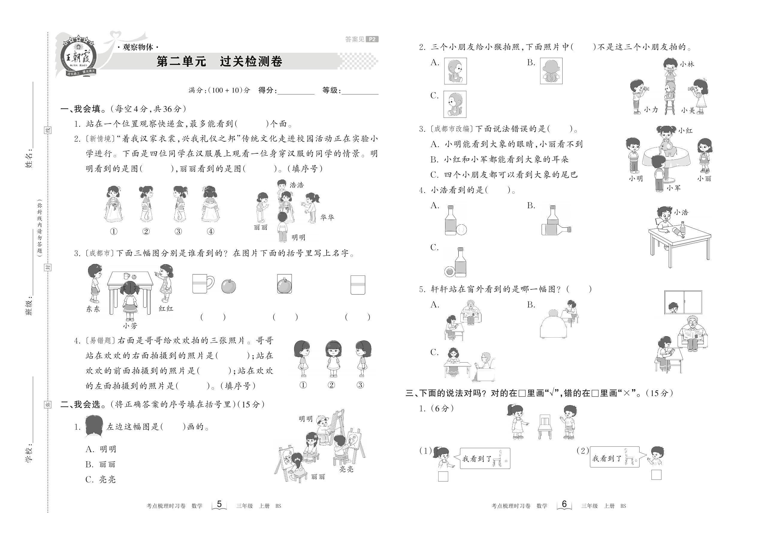 2023上册三年级数学北师版 第二单元 过关检测卷