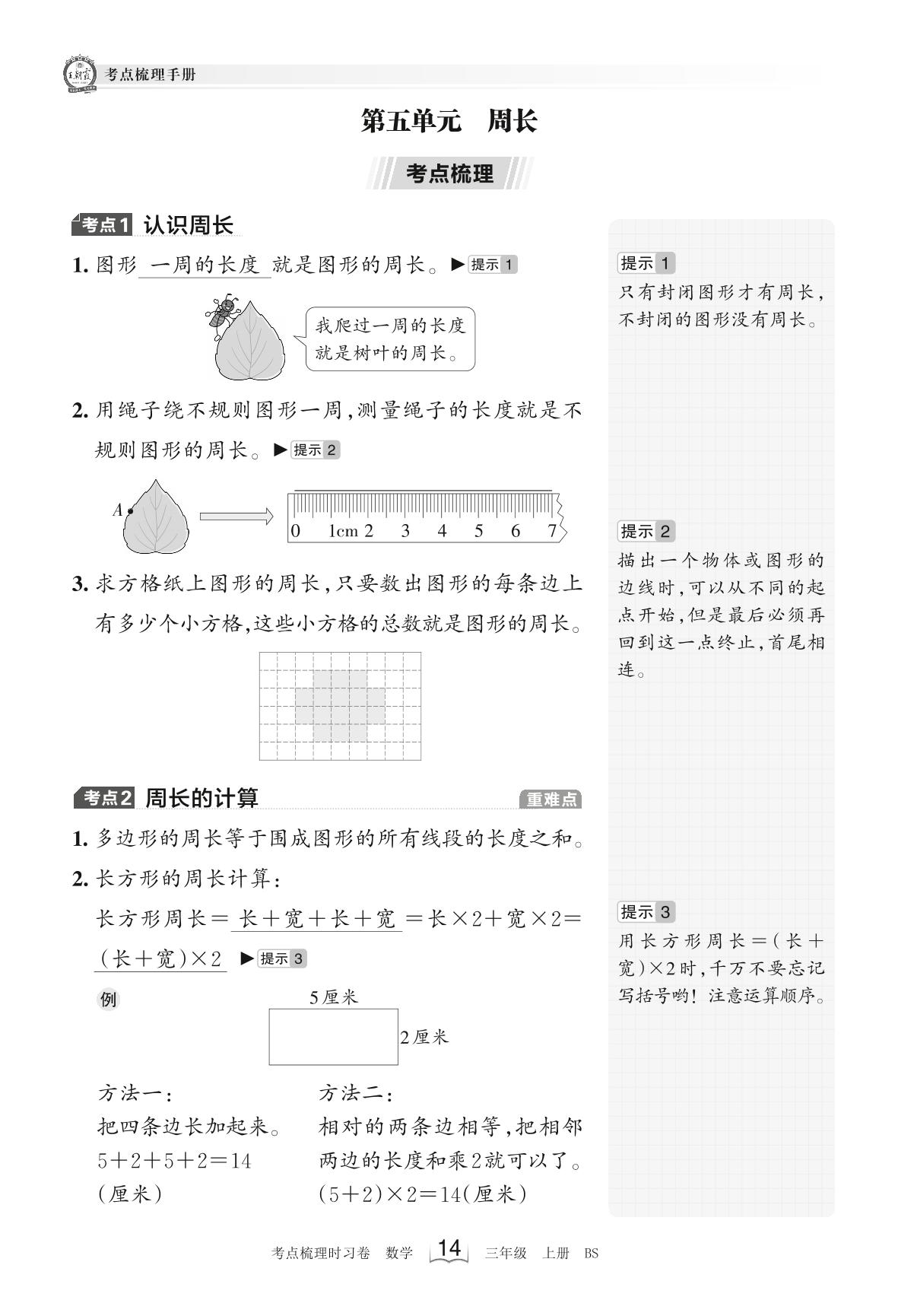 2023上册三年级数学北师版 考点梳理手册——第五单元 周长
