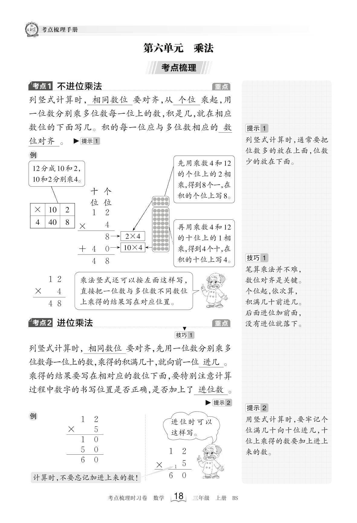 2023上册三年级数学北师版 考点梳理手册——第六单元 乘法