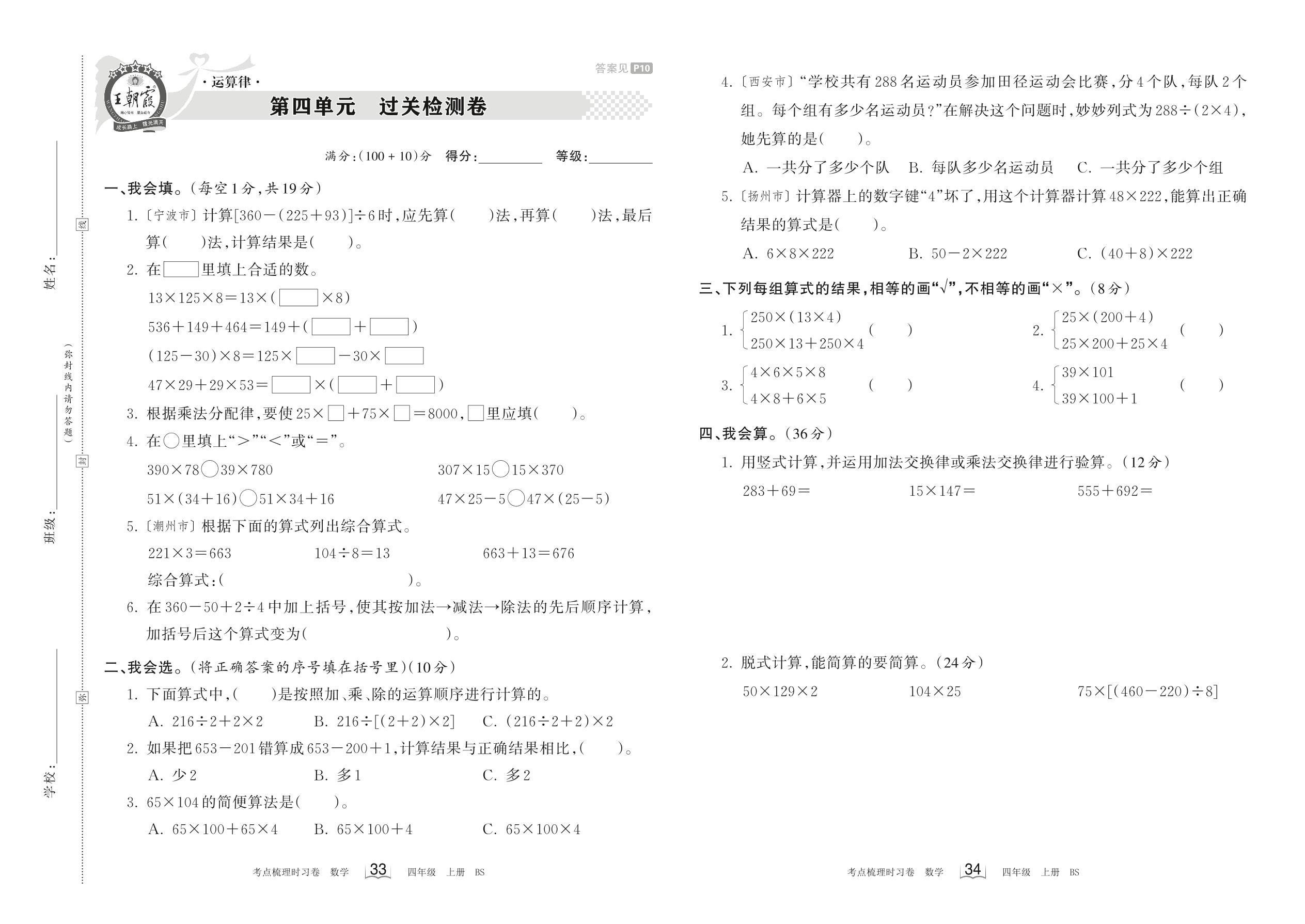 2023上册四年级数学北师版 第四单元 过关检测卷