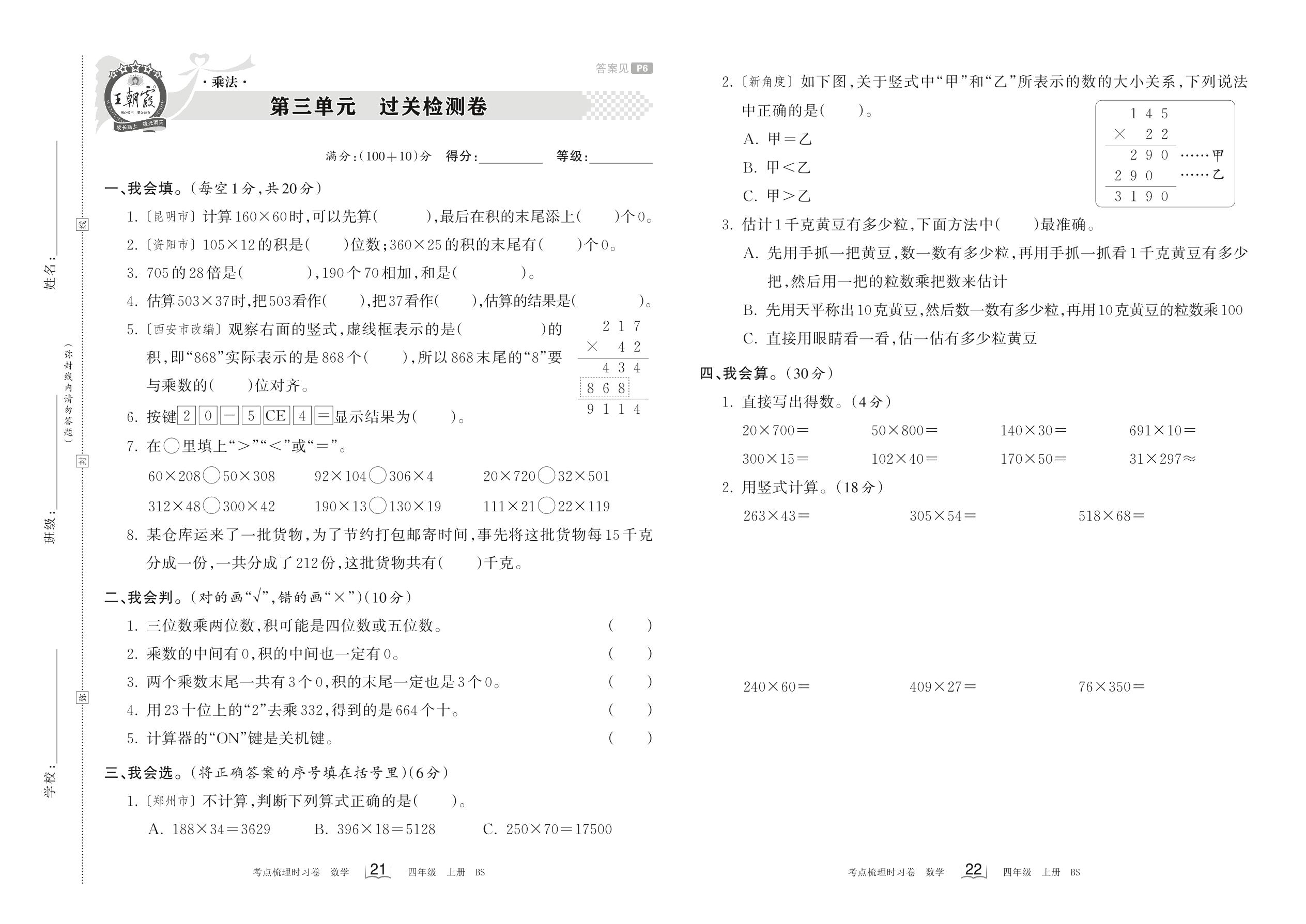 四年级数学北师版上册单元卷