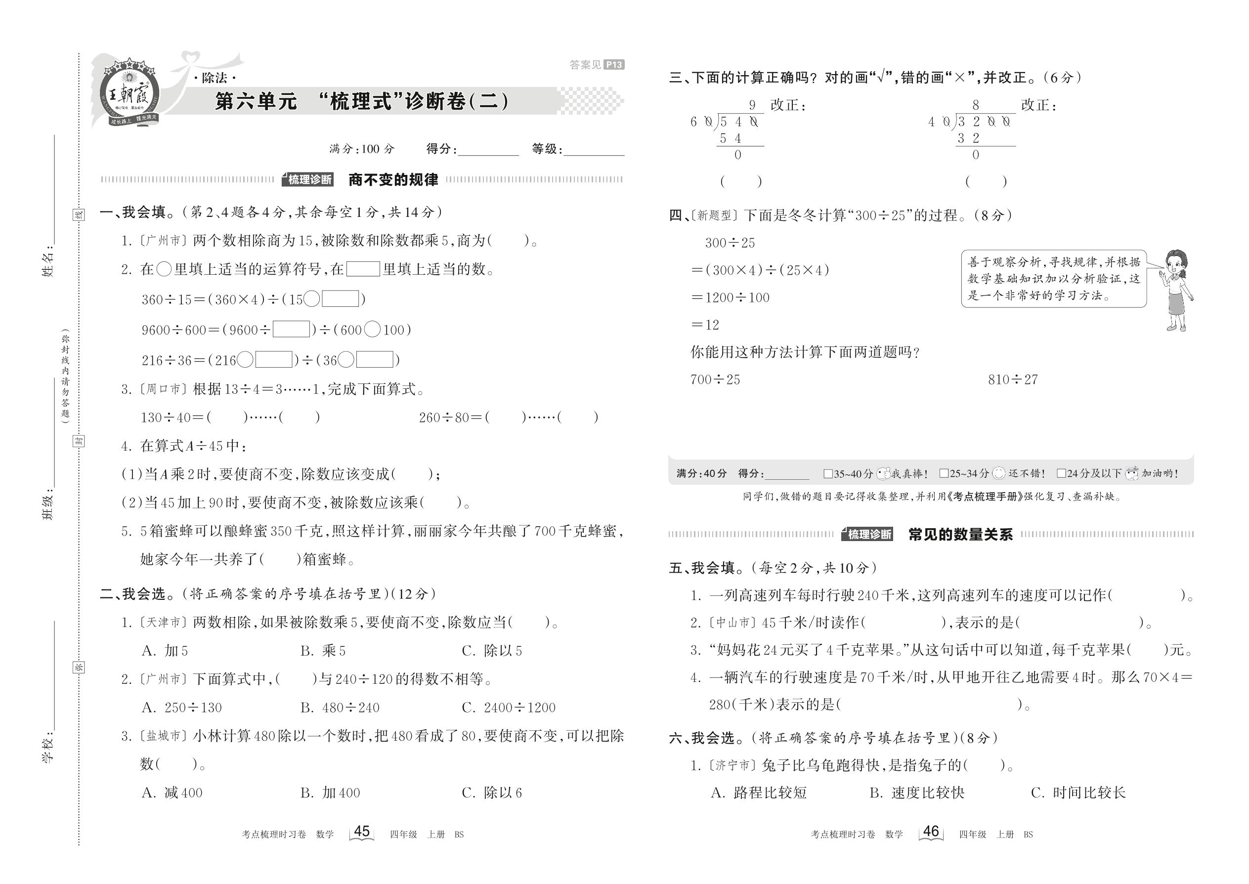 2023上册四年级数学北师版 第六单元 “梳理式”诊断卷(二)