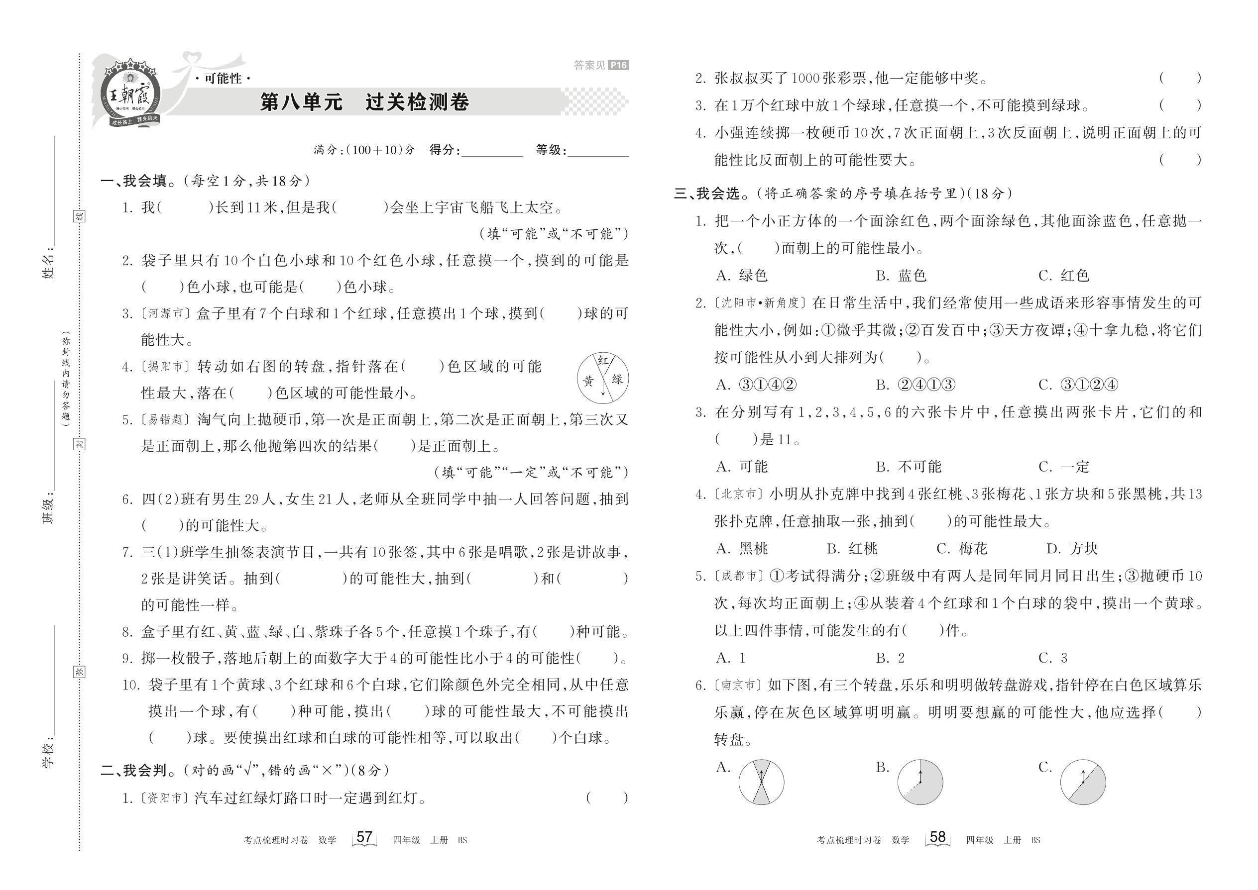2023上册四年级数学北师版 第八单元 过关检测卷