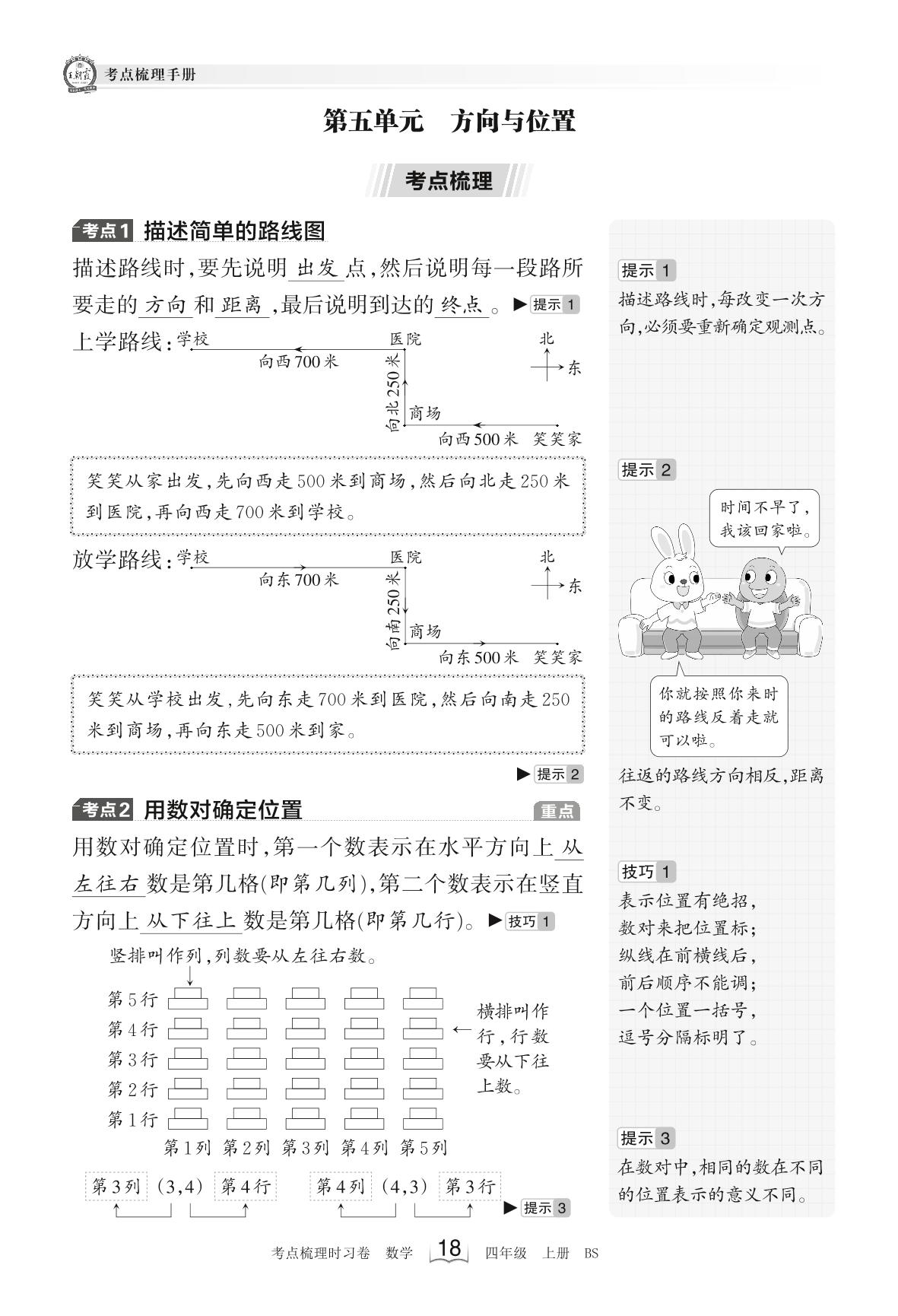 2023上册四年级数学北师版 考点梳理手册——第五单元 方向与位置