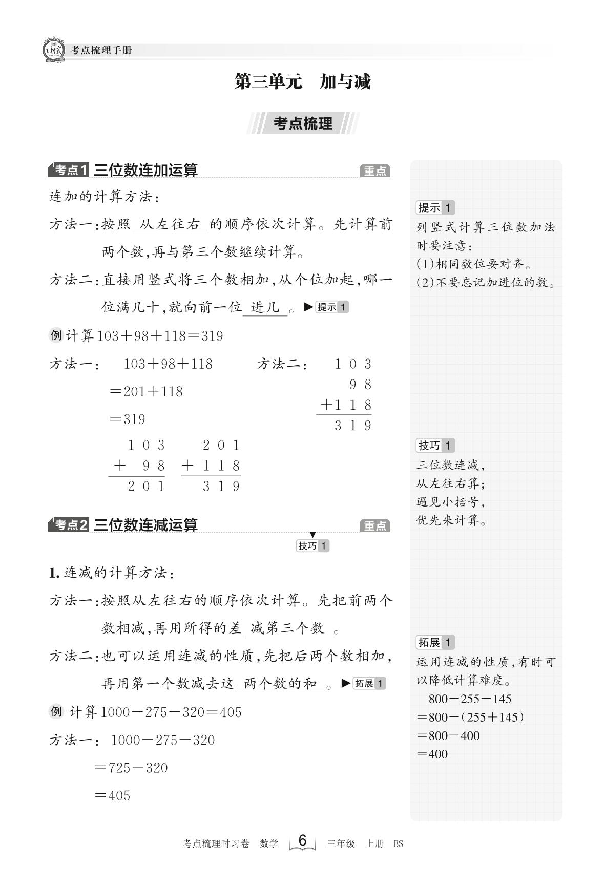 2023上册五年级数学北师版 考点梳理手册——第三单元 加与减