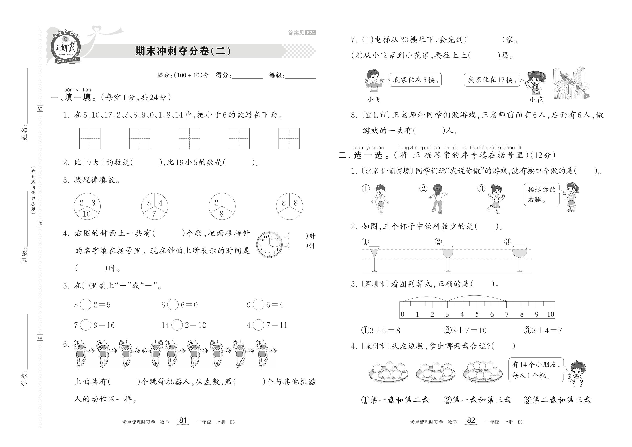 2023上册一年级数学北师版 期末冲刺夺分卷(二)