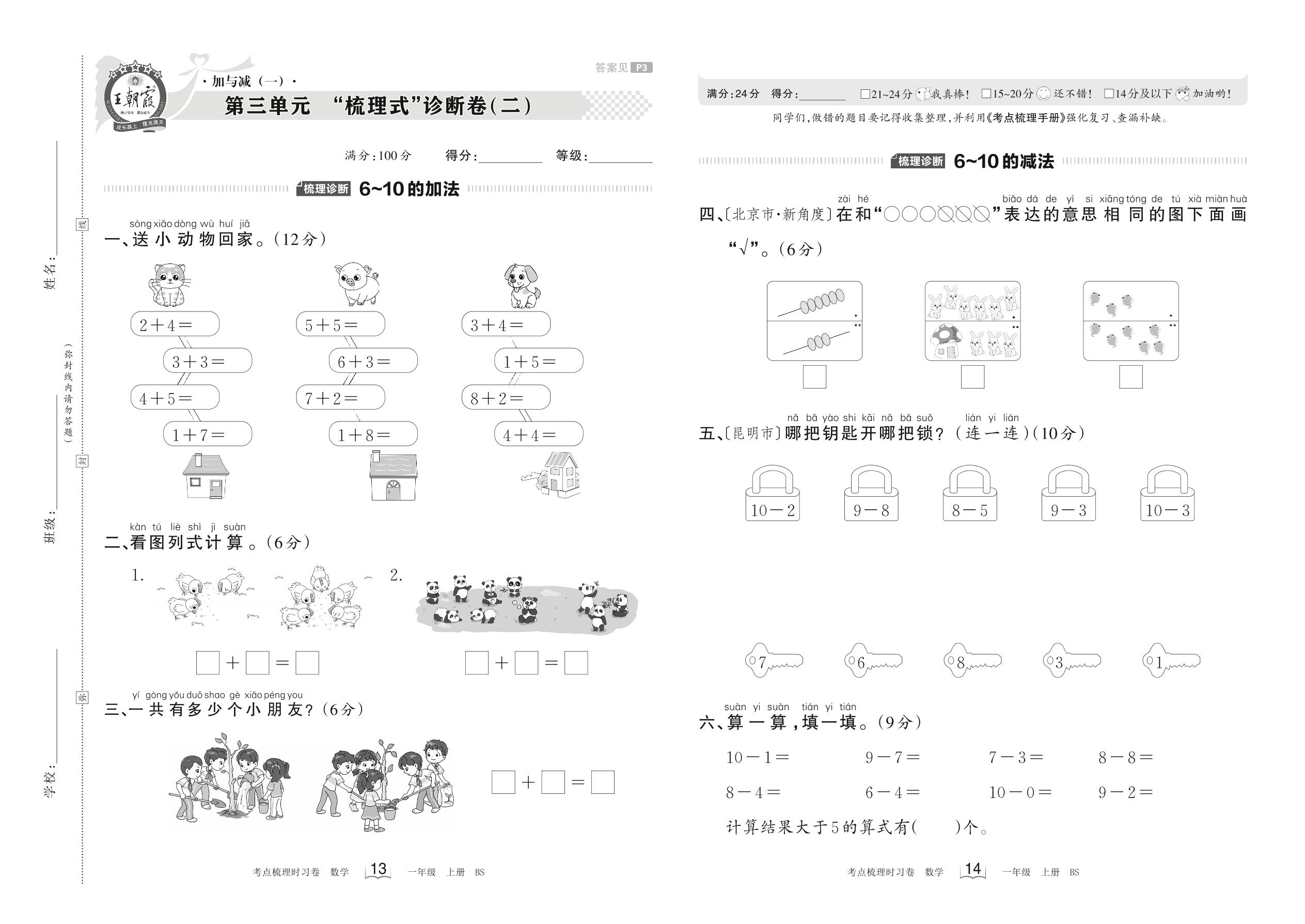 2023上册一年级数学北师版 第三单元 “梳理式”诊断卷(二)