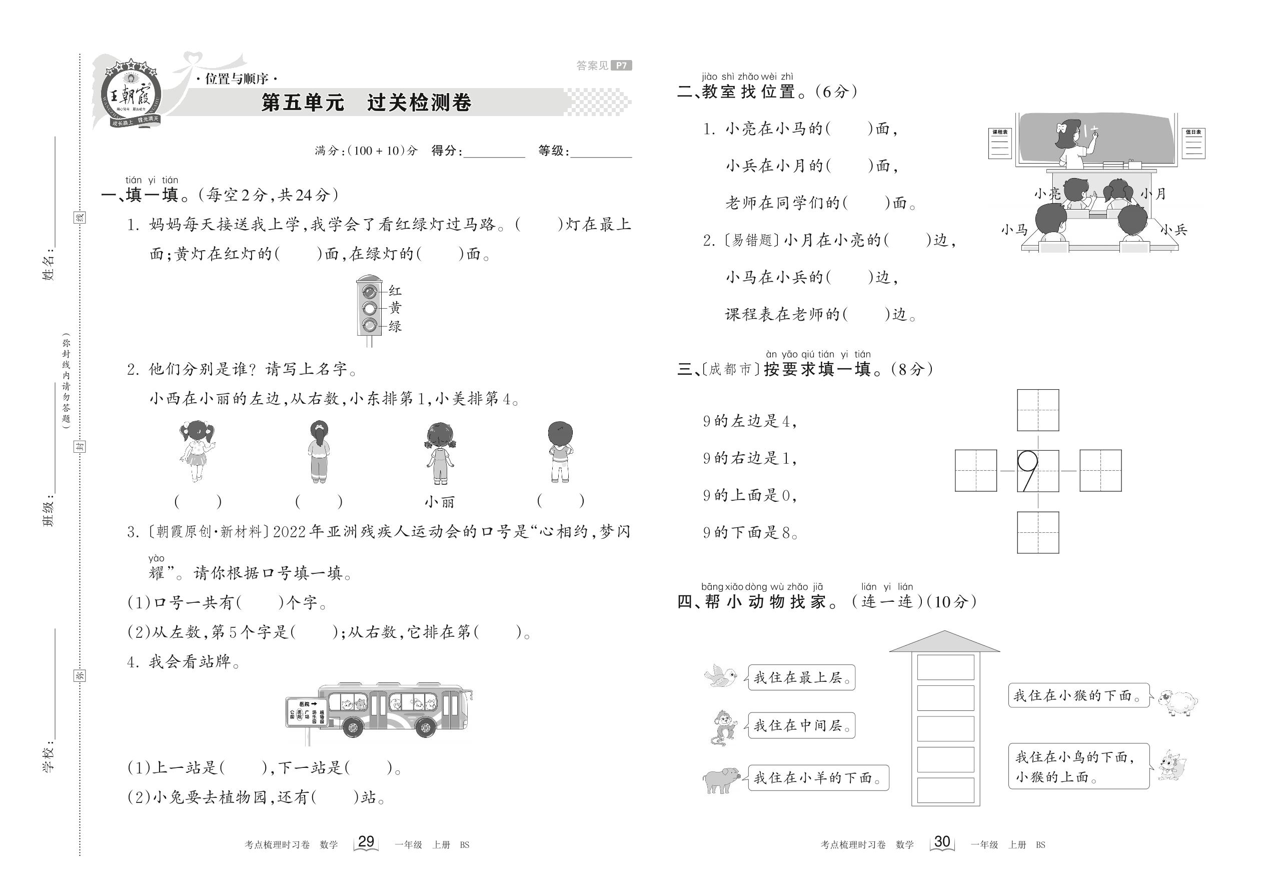 2023上册一年级数学北师版 第五单元 过关检测卷