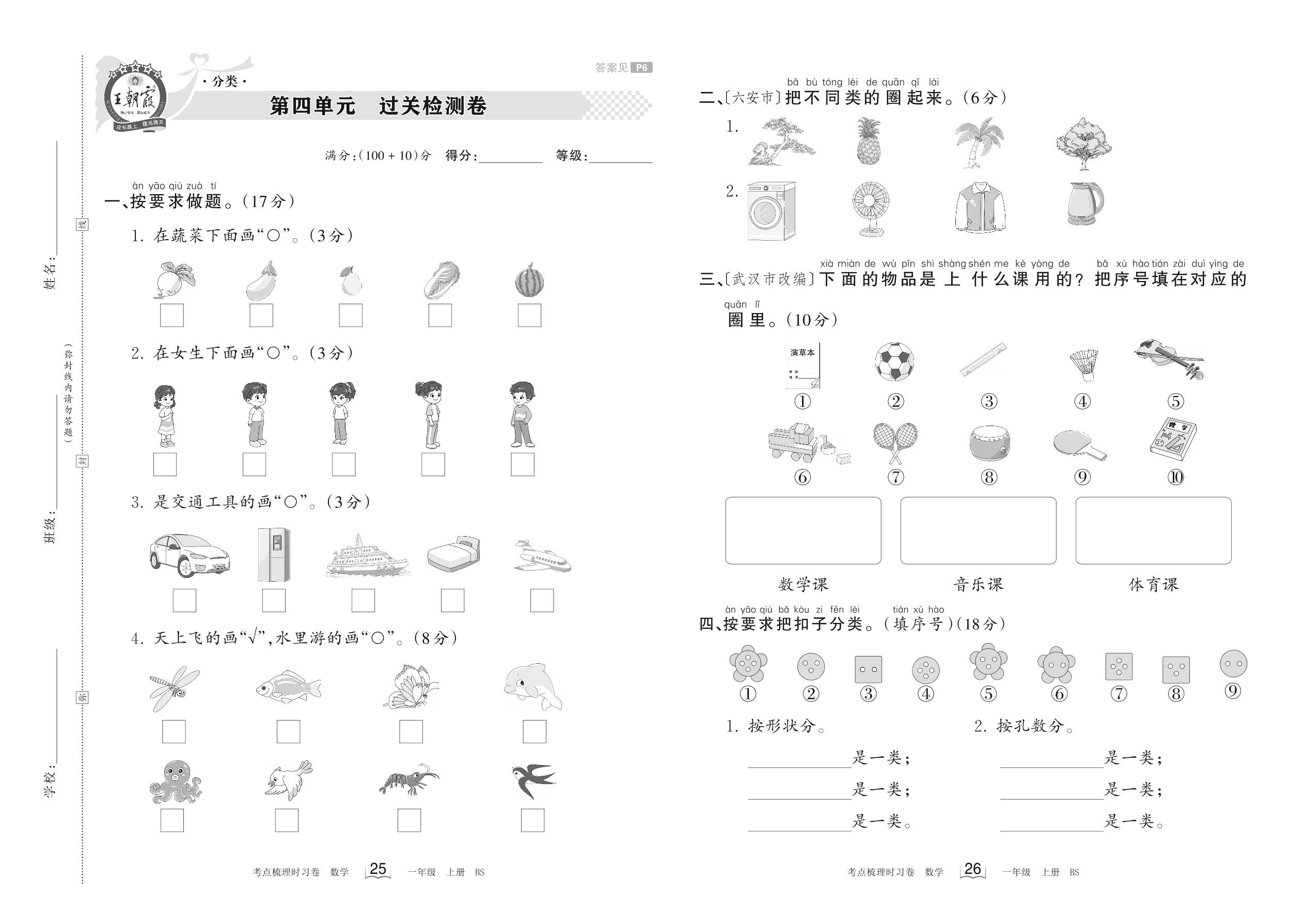 2023上册一年级数学北师版 第四单元 过关检测卷