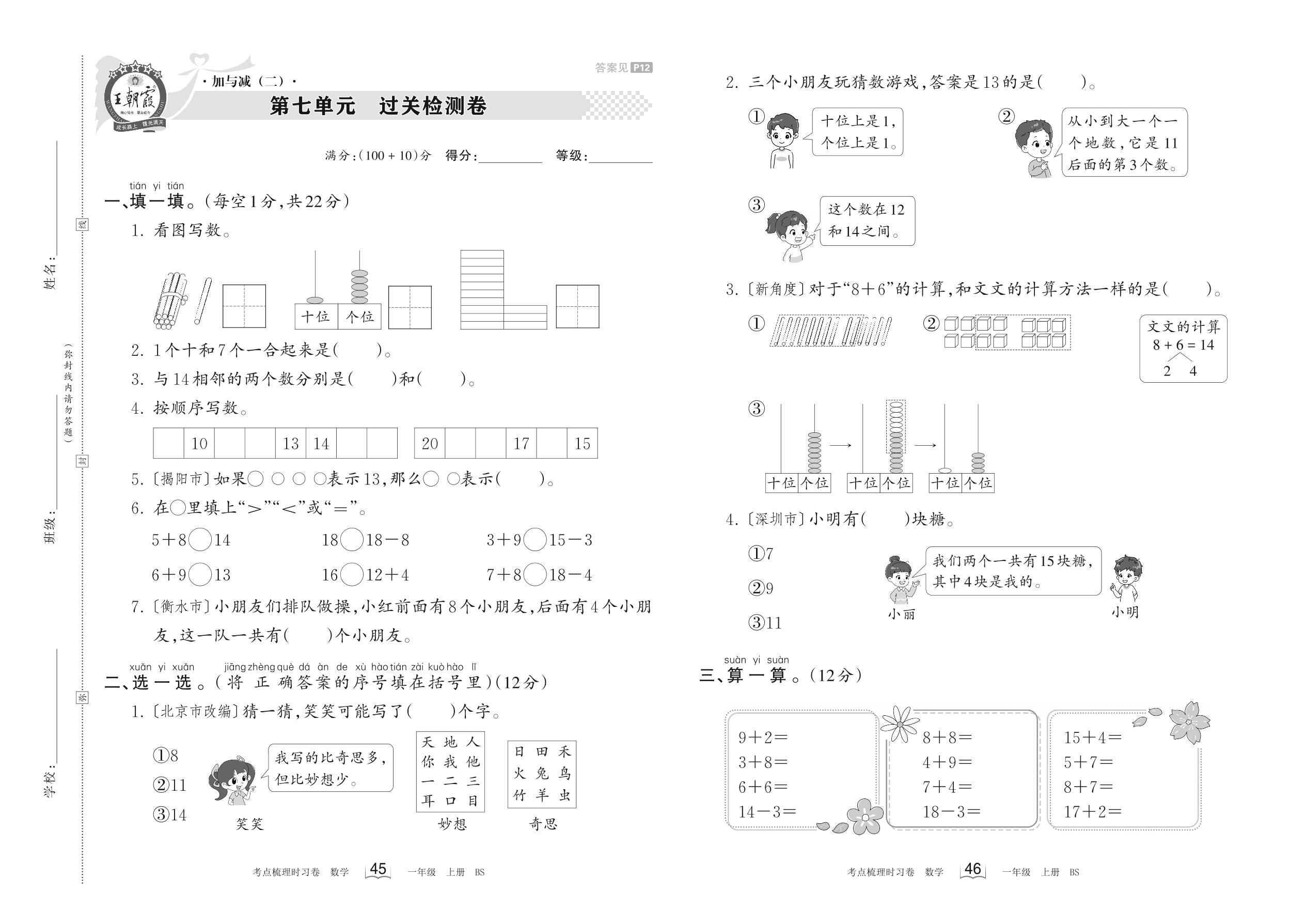 2023上册一年级数学北师版 第七单元 过关检测卷
