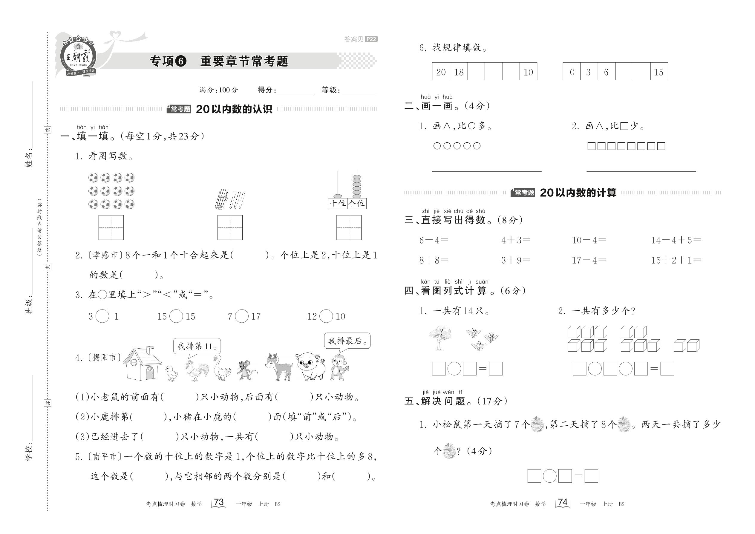 2023上册一年级数学北师版 专项6 重要章节常考题