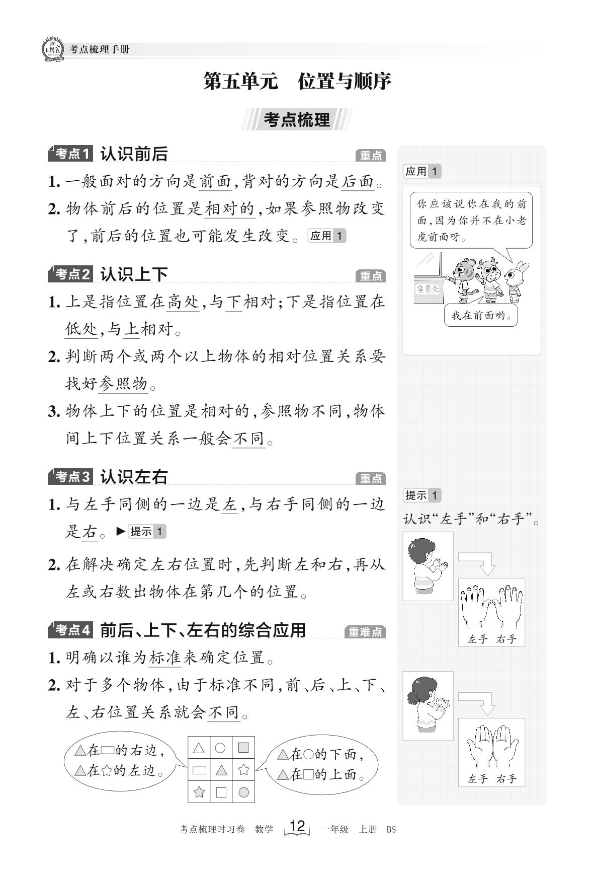 2023上册一年级数学北师版 考点梳理手册——第五单元 位置与顺序