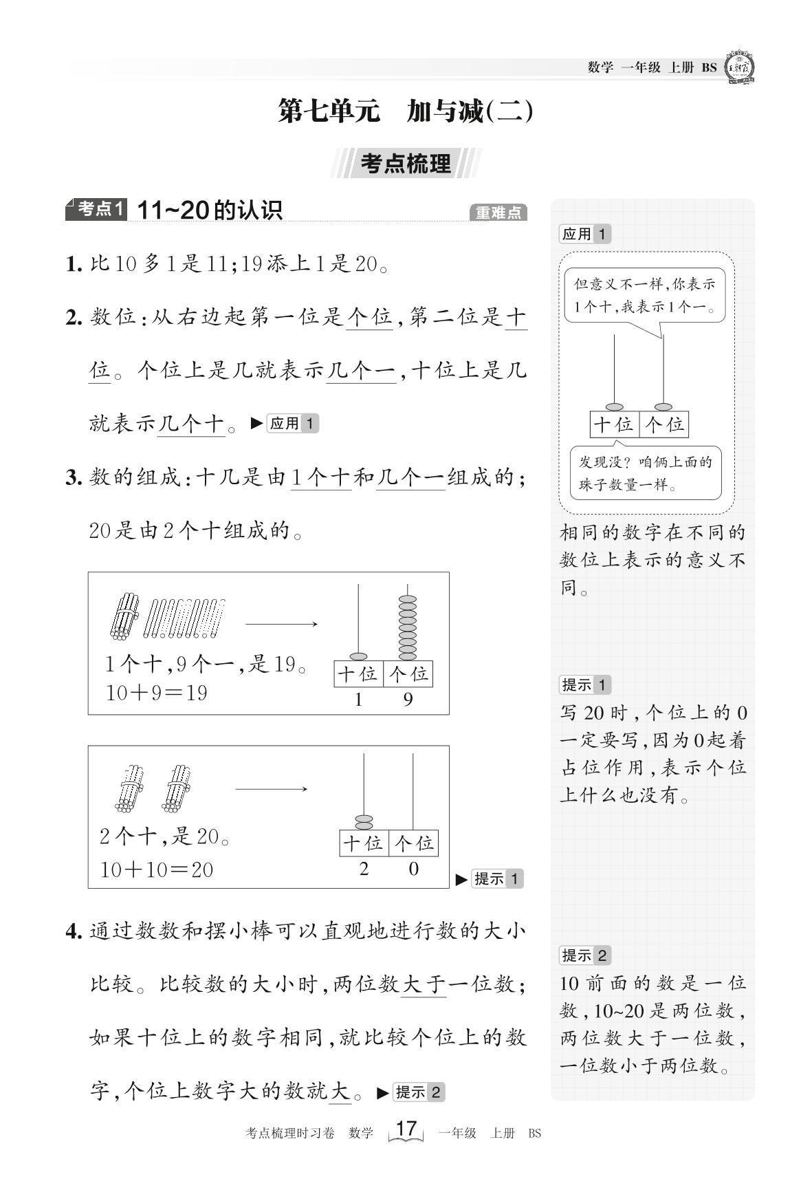 2023上册一年级数学北师版 考点梳理手册——第七单元 加与减(二)