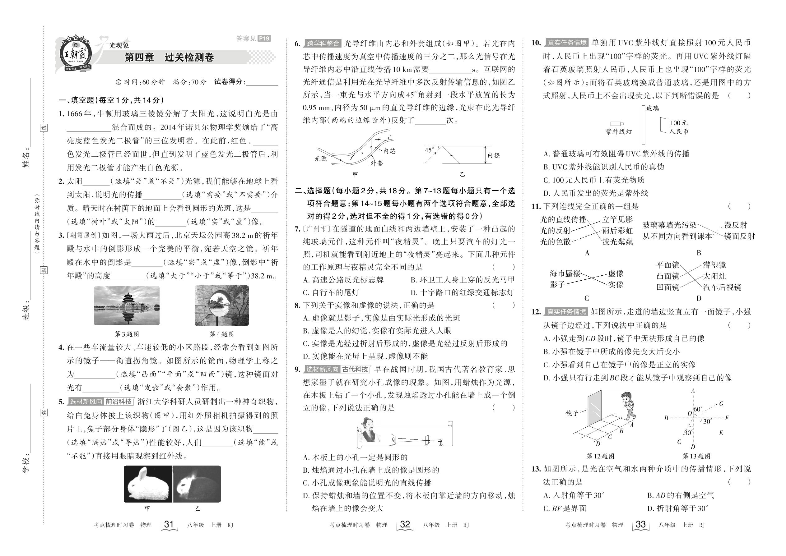 2023上册八年级物理人教版 第四章 过关检测卷