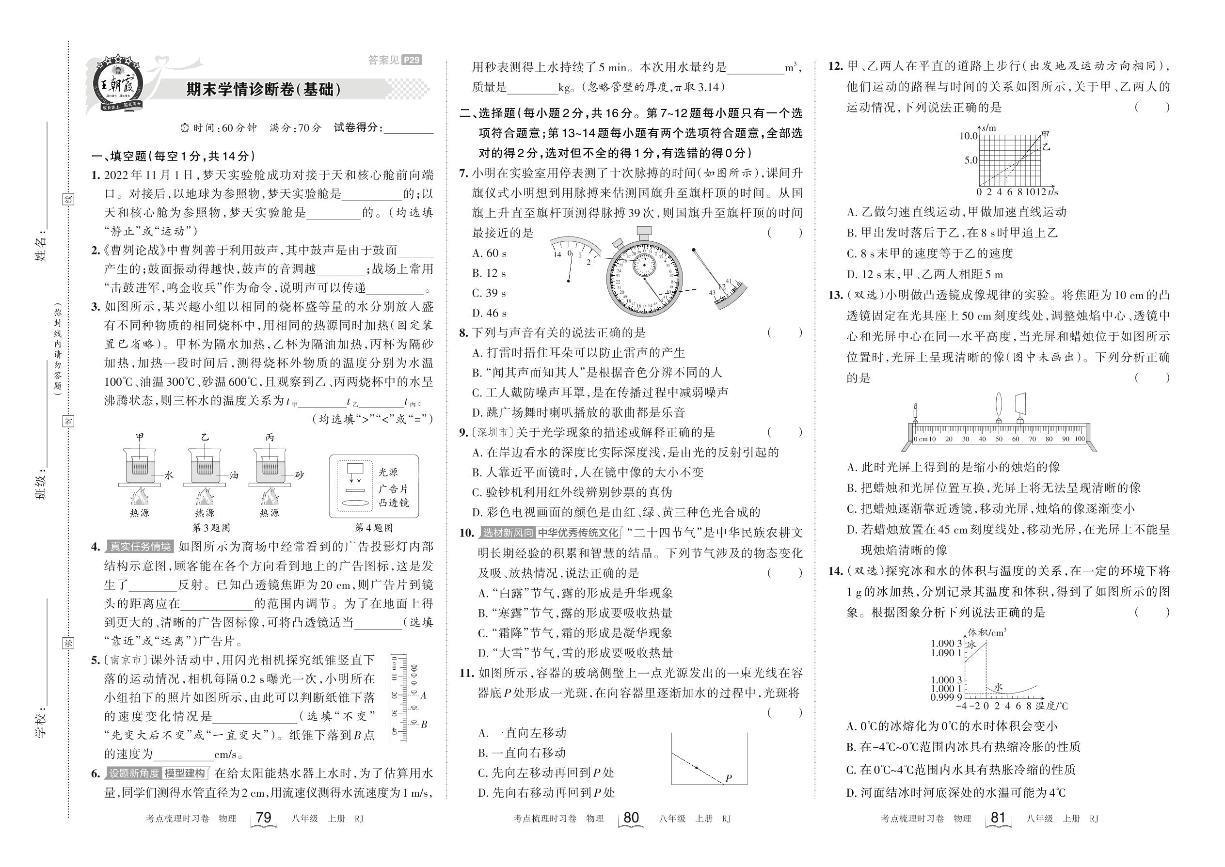 2023上册八年级物理人教版 期末学情诊断卷(基础)