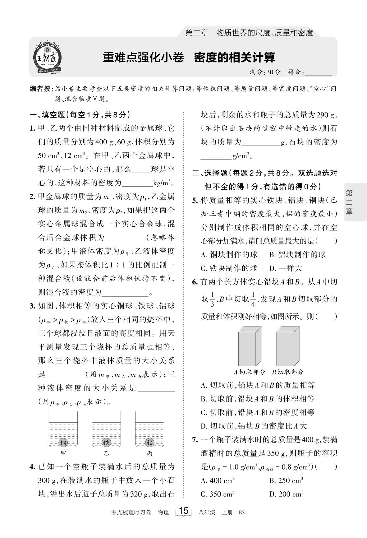 2023上册八年级物理北师版 第二章 重难点强化小卷 密度的相关计算
