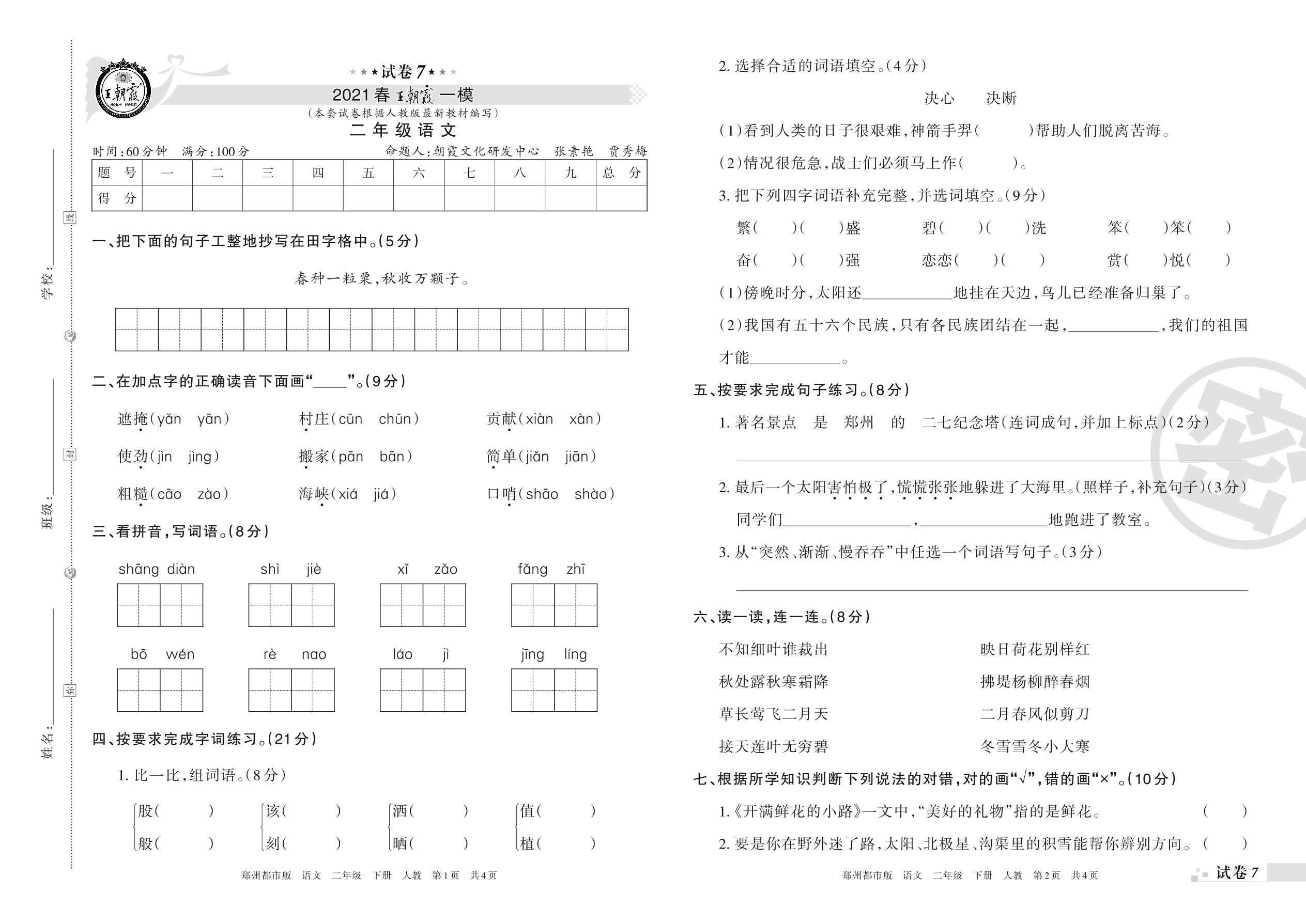 王朝霞期末模拟卷二年级下册语文(人教版)_R21080163035【7】