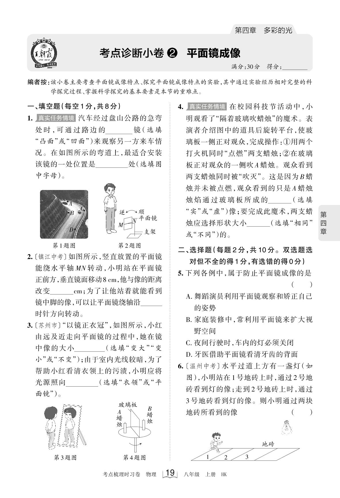 2023上册八年级物理沪科版 第四章 考点诊断小卷2 平面镜成像
