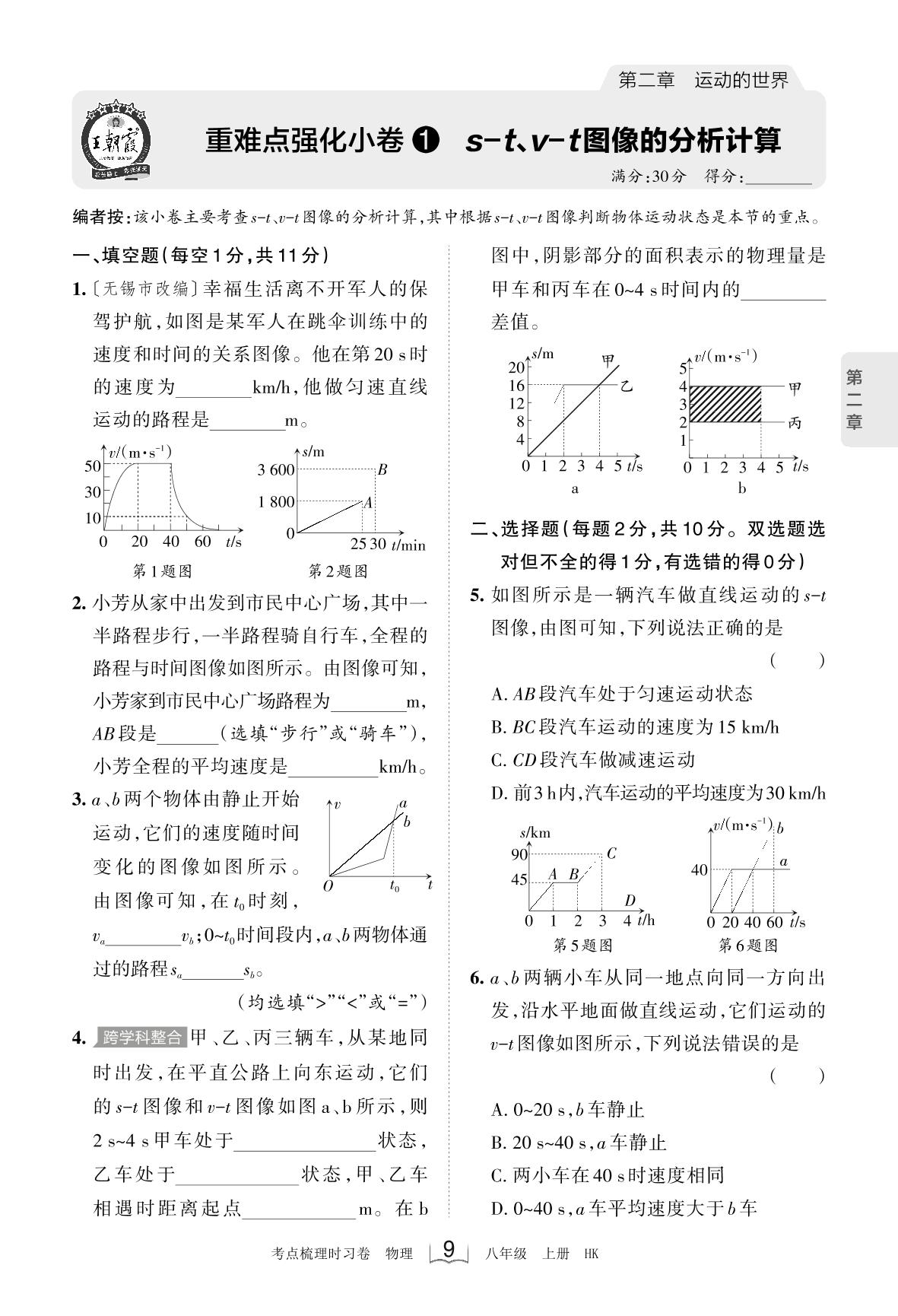 2023上册八年级物理沪科版 第二章 重难点强化小卷1 s-t、v-t图像的分析计算