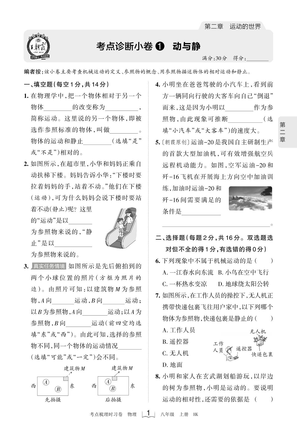 2023上册八年级物理沪科版 第二章 考点诊断小卷1 动与静