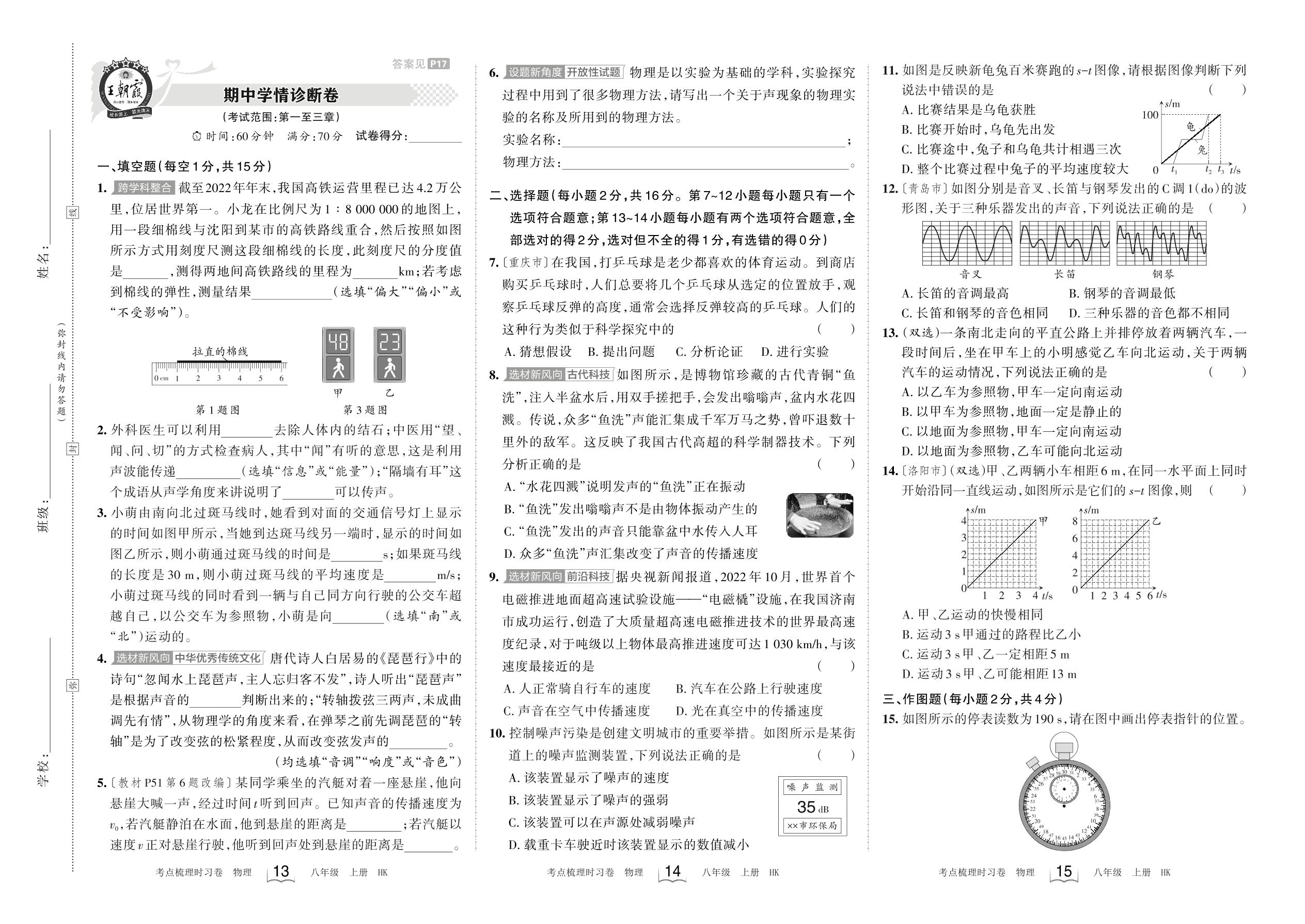 2023-2024学年第一学期八年级物理沪科版 期中学情诊断卷