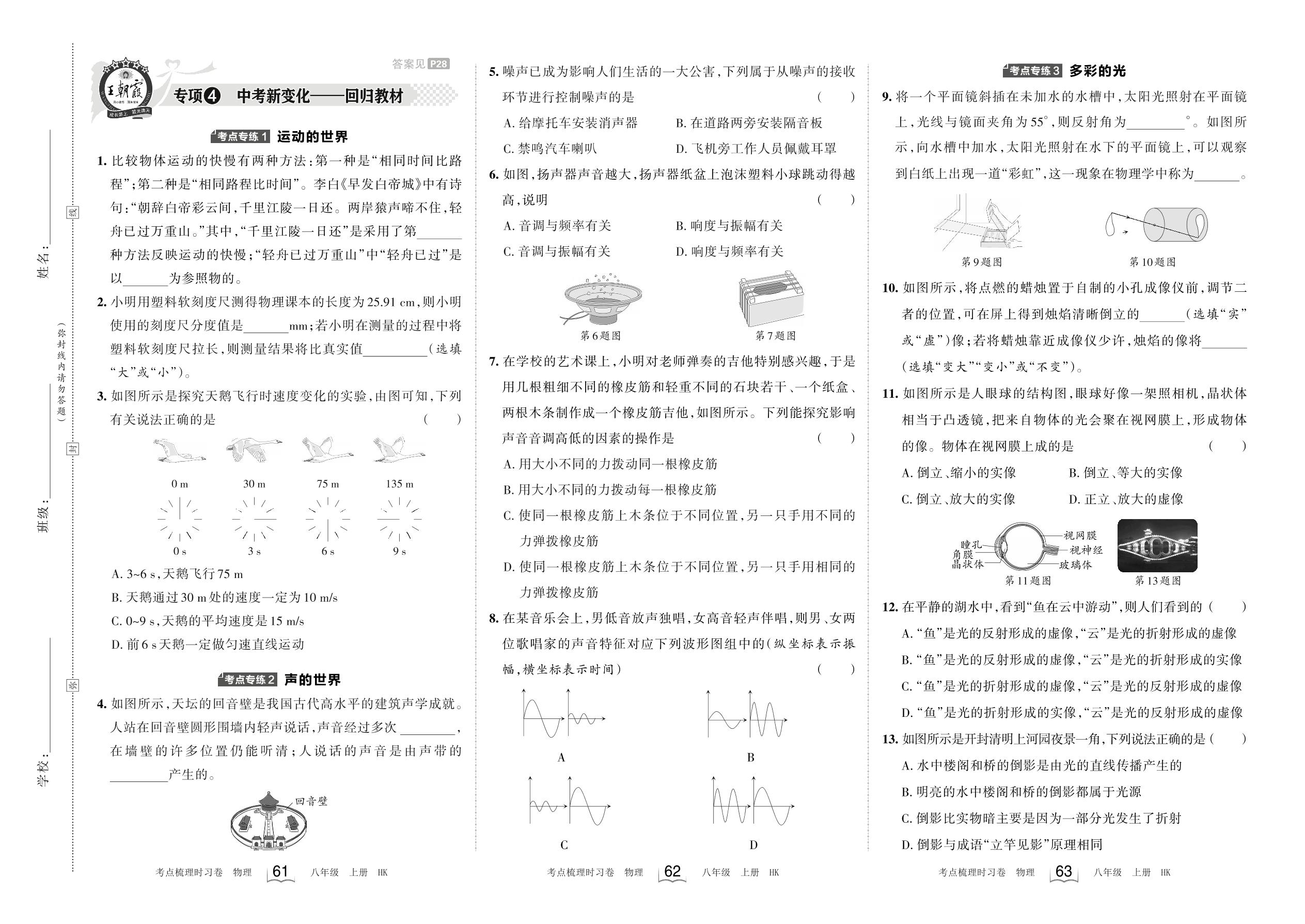 2023上册八年级物理沪科版 专项4 中考新变化——回归教材