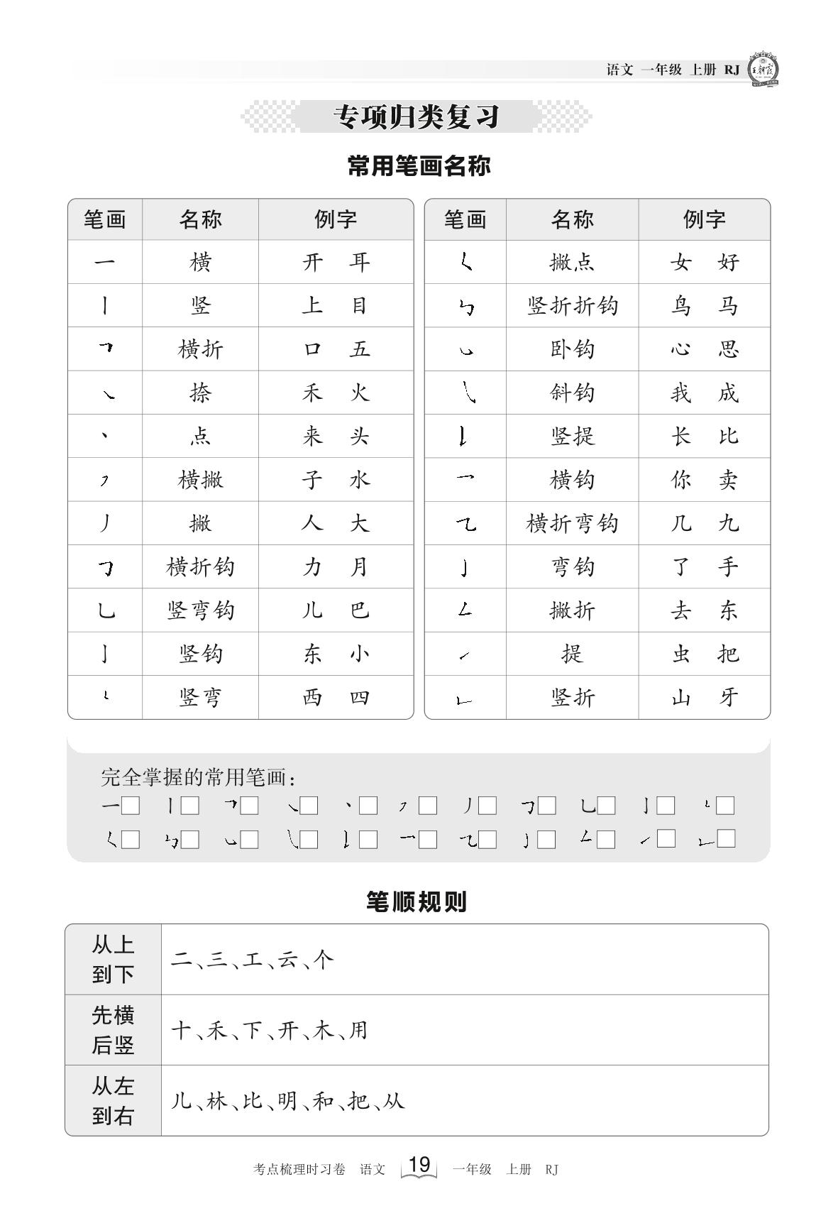 2023上册一年级语文人教版 考点梳理手册——专项归类复习