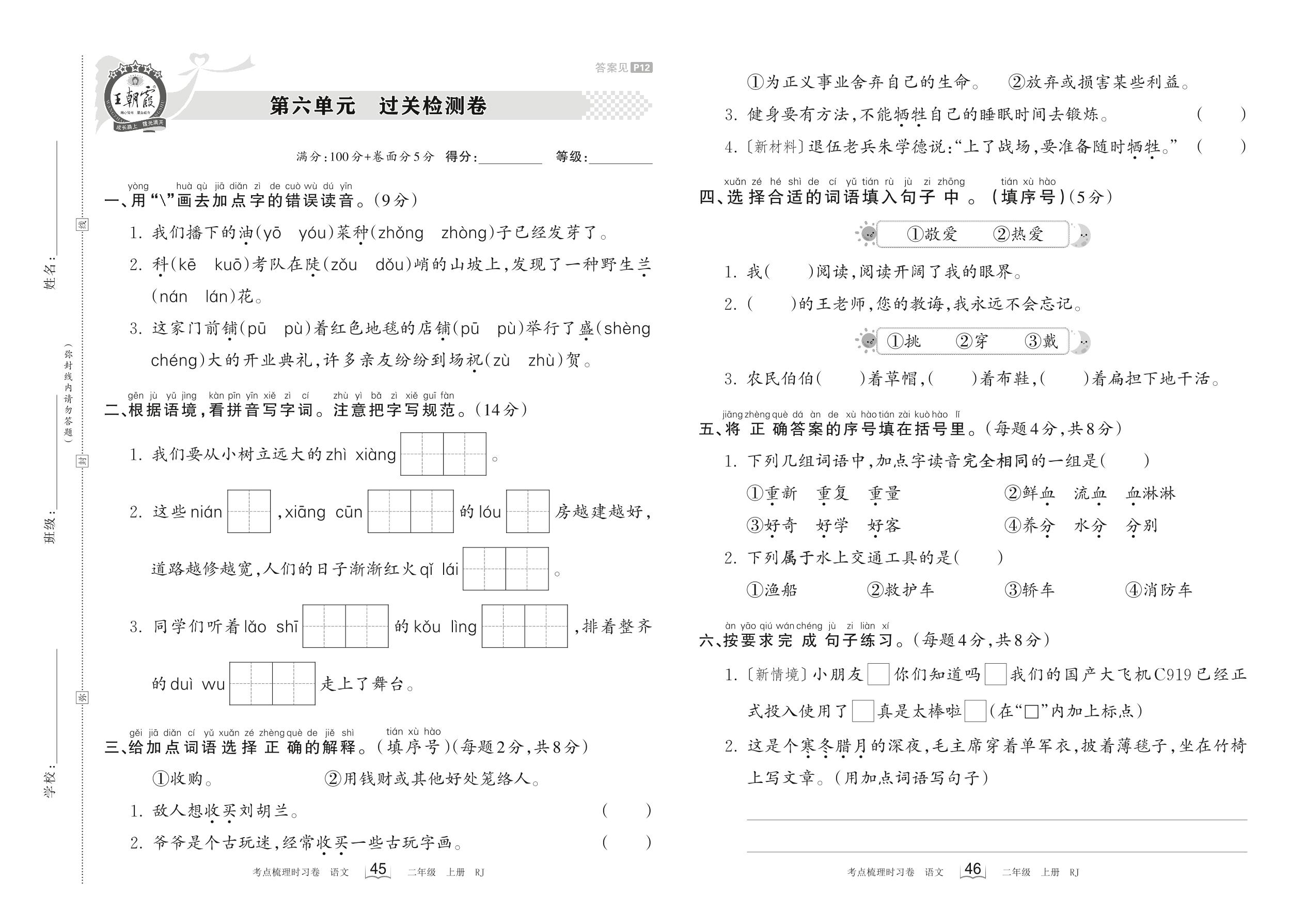 二年级语文人教版上册单元卷
