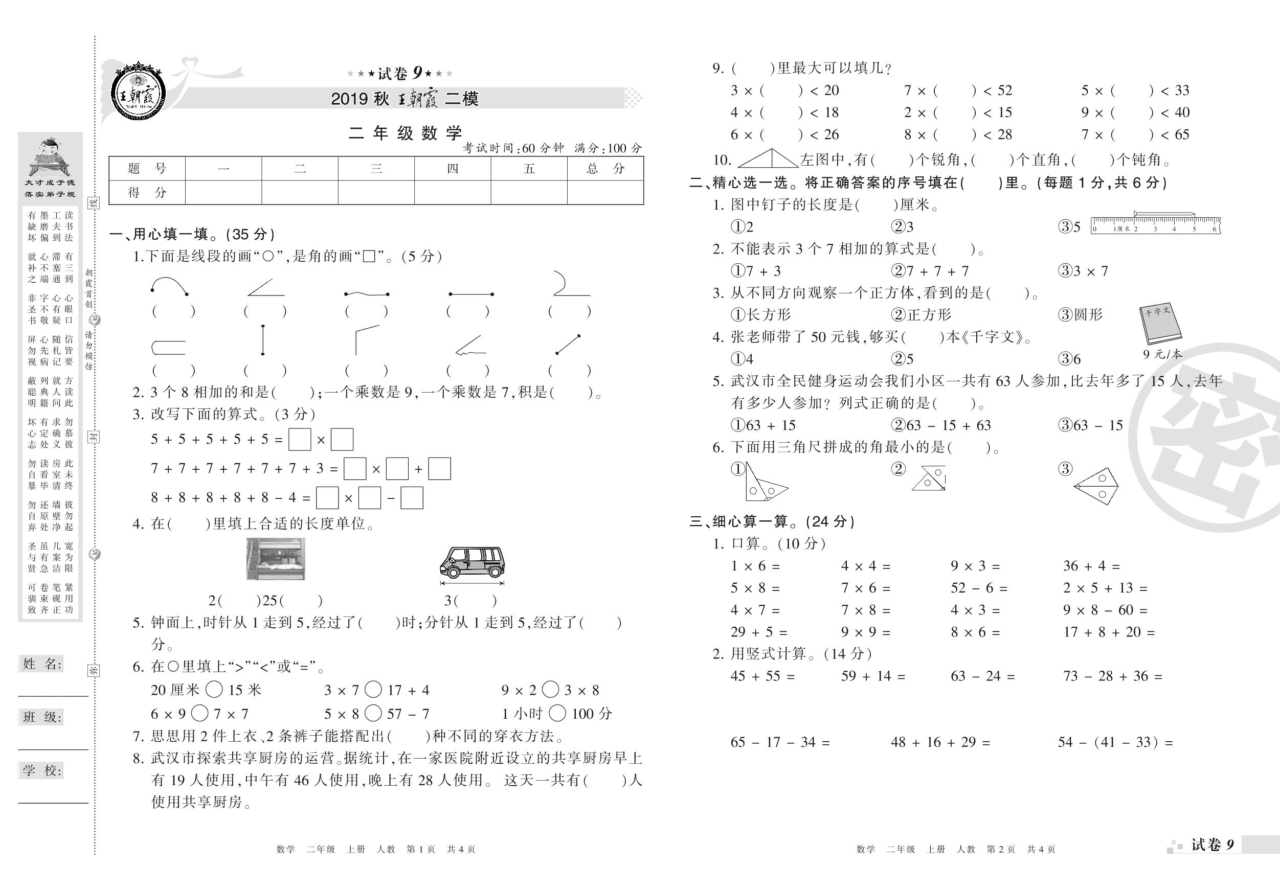 王朝霞期末模拟卷二年级上册数学(人教版)_R21080393057【9】