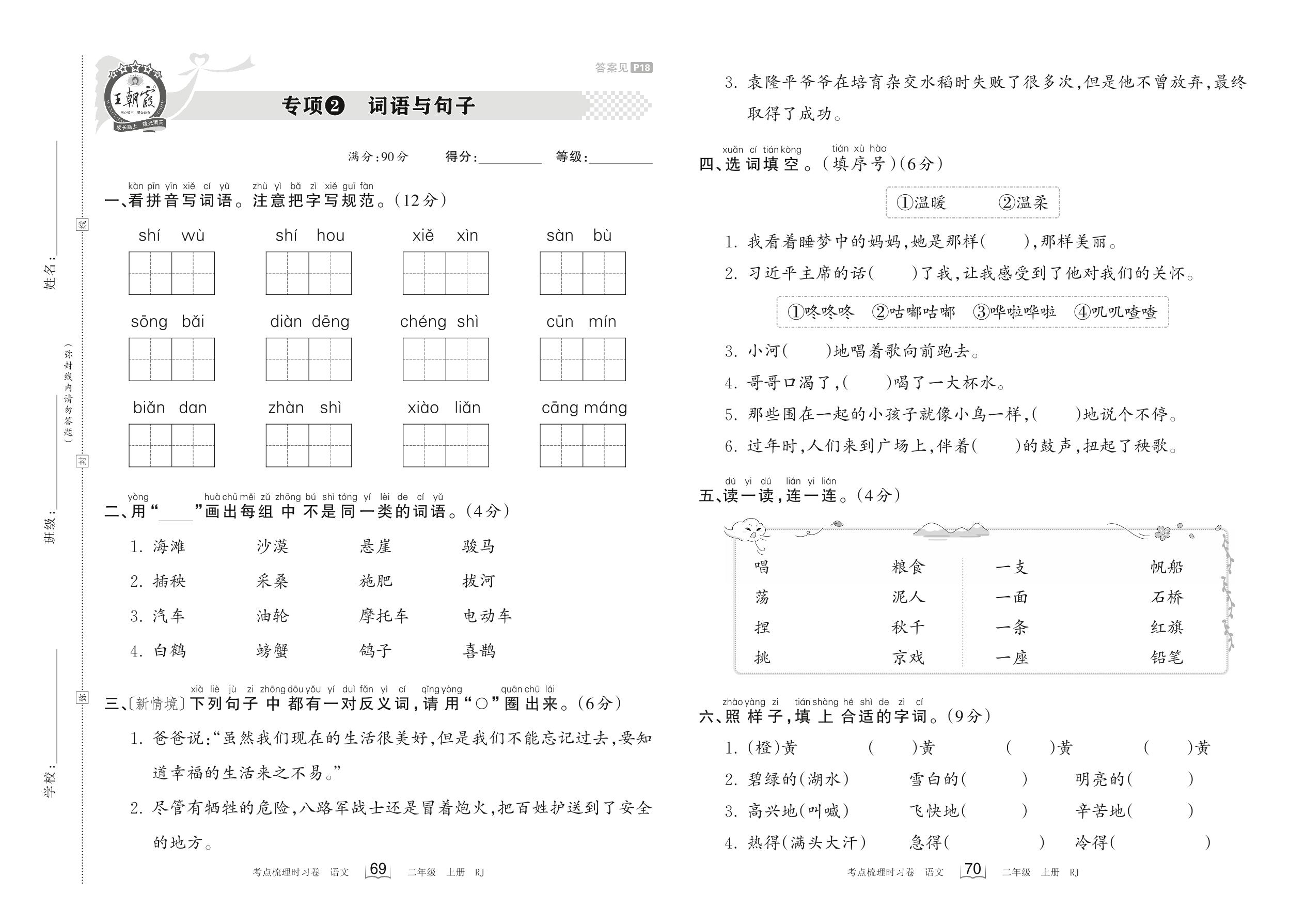 2023上册二年级语文人教版 专项2 词语与句子
