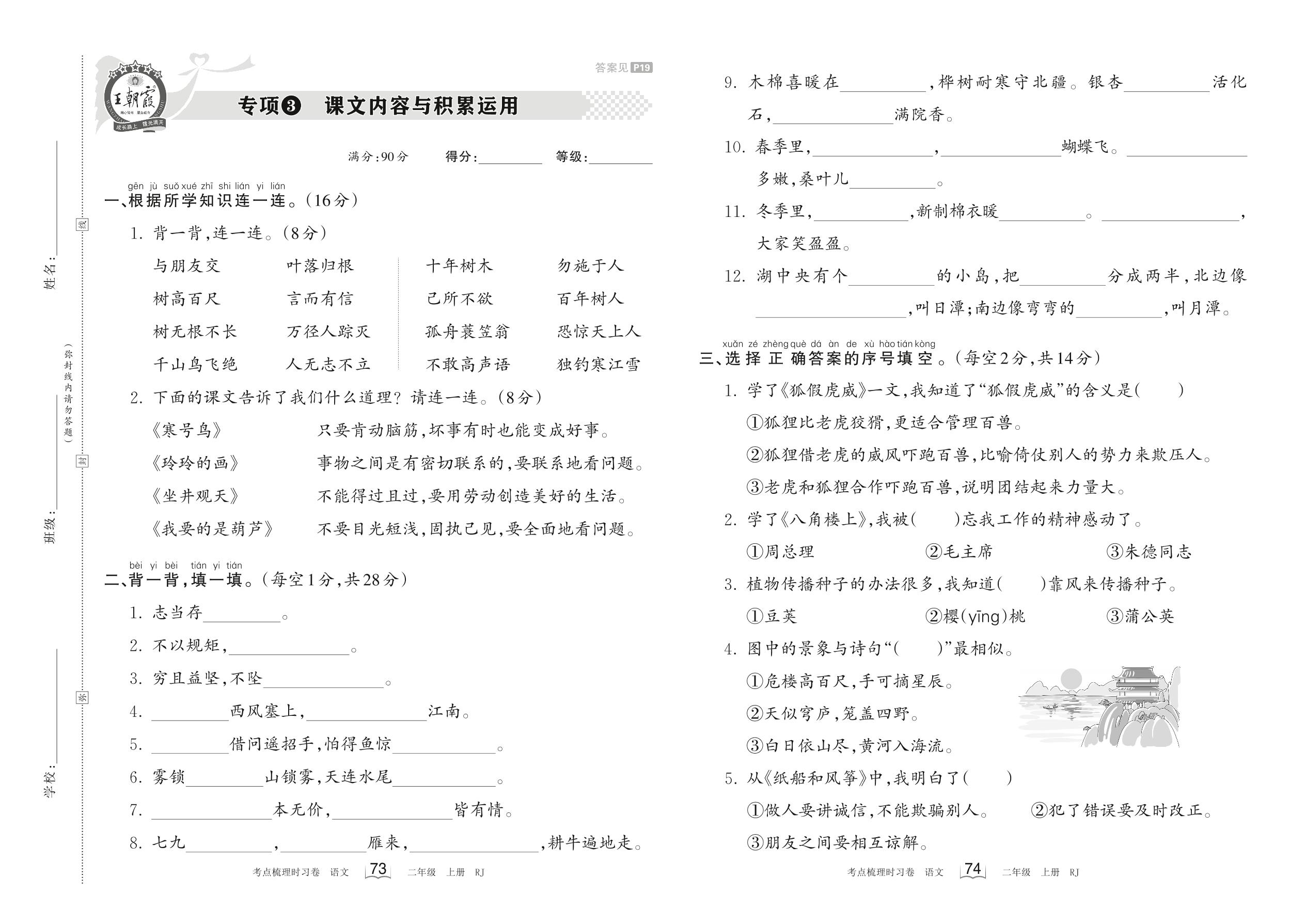 2023上册二年级语文人教版 专项3 课文内容与积累运用