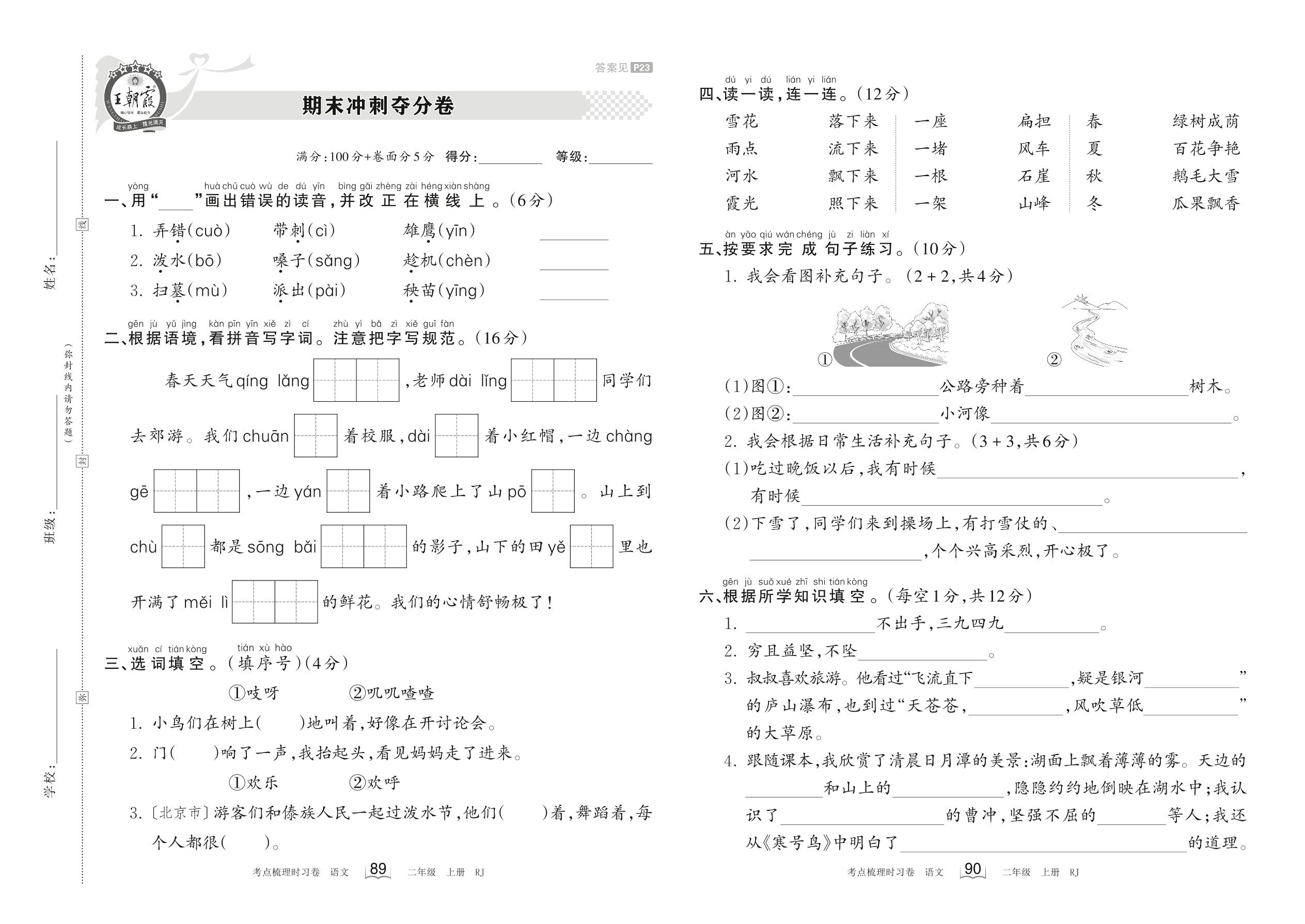 2023上册二年级语文人教版 期末冲刺夺分卷