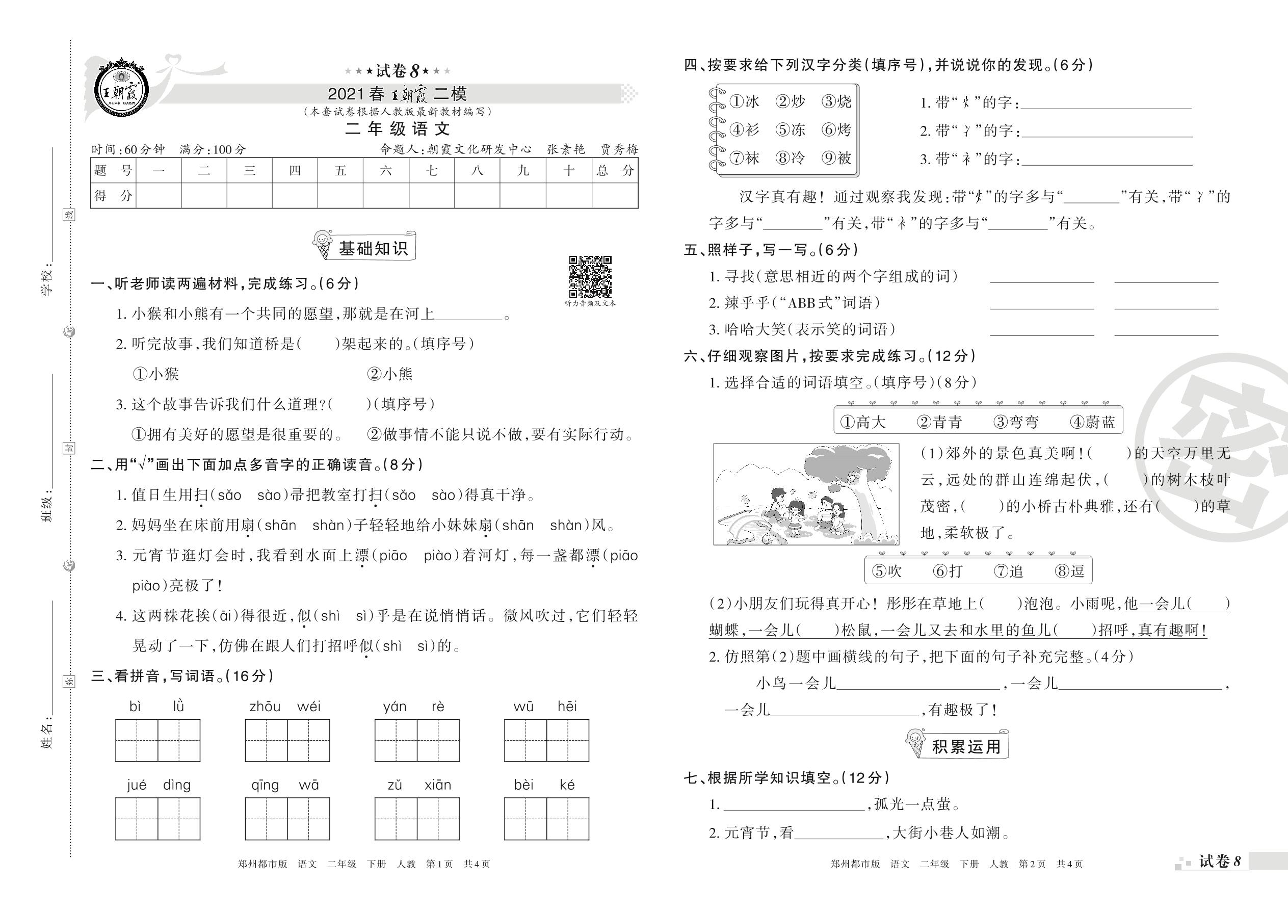 王朝霞期末模拟卷二年级下册语文(人教版)_R21080163039【8】