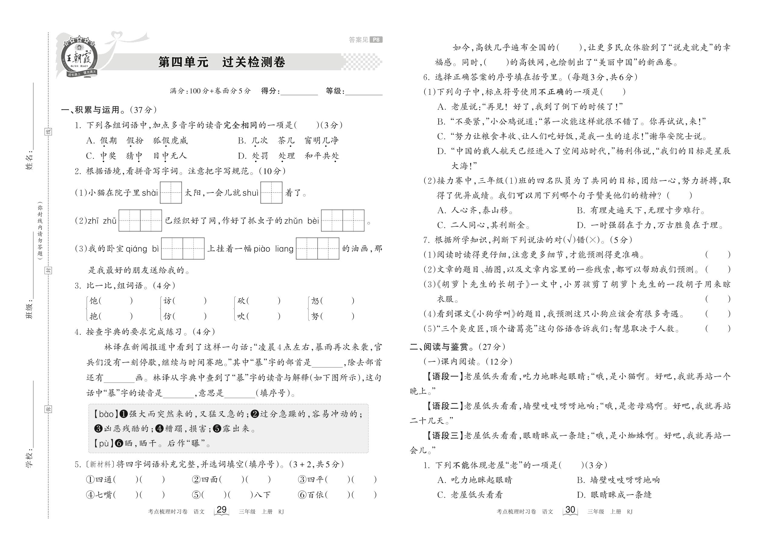 三年级语文人教版上册单元卷