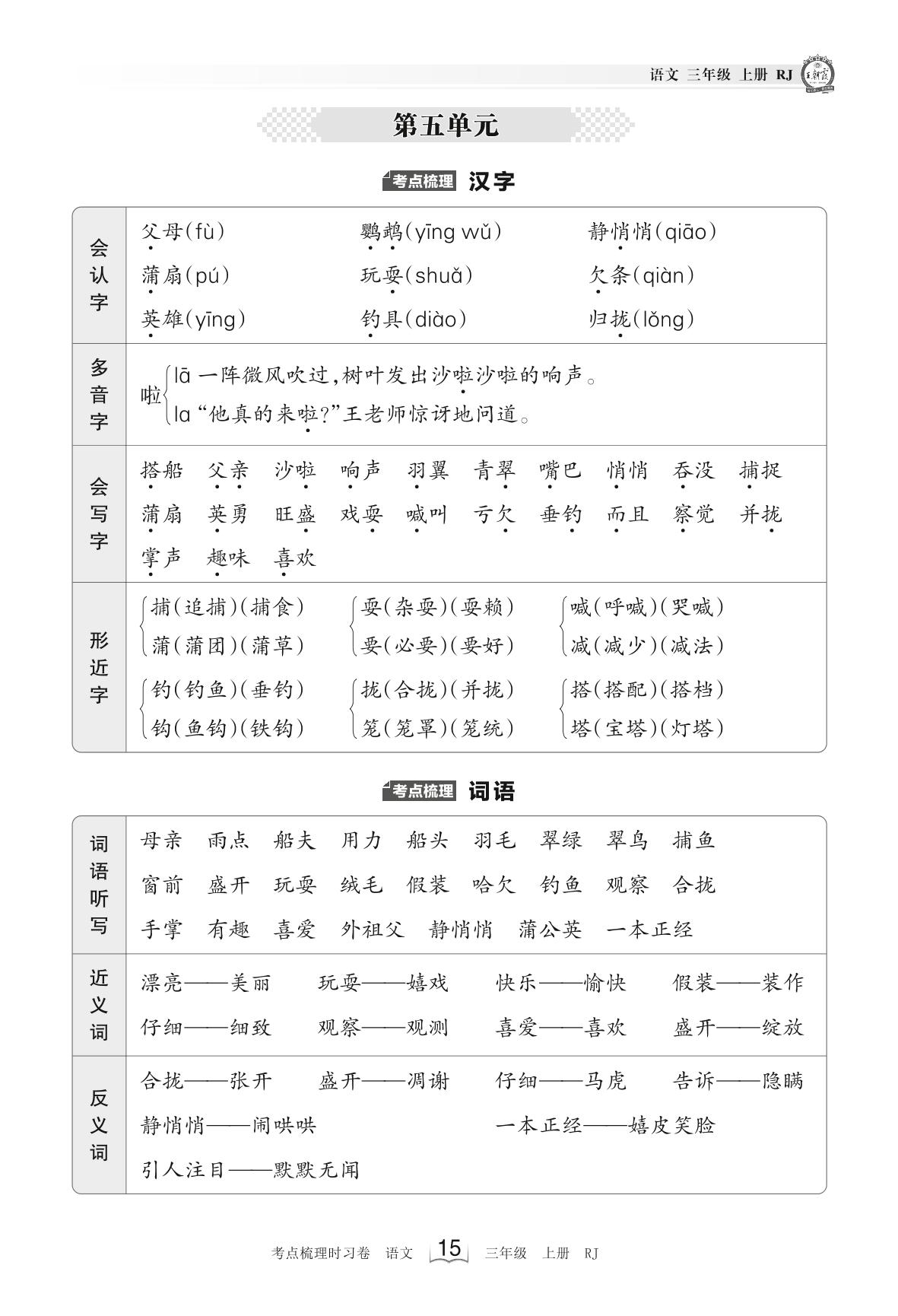 2023上册三年级语文人教版 考点梳理手册——第五单元