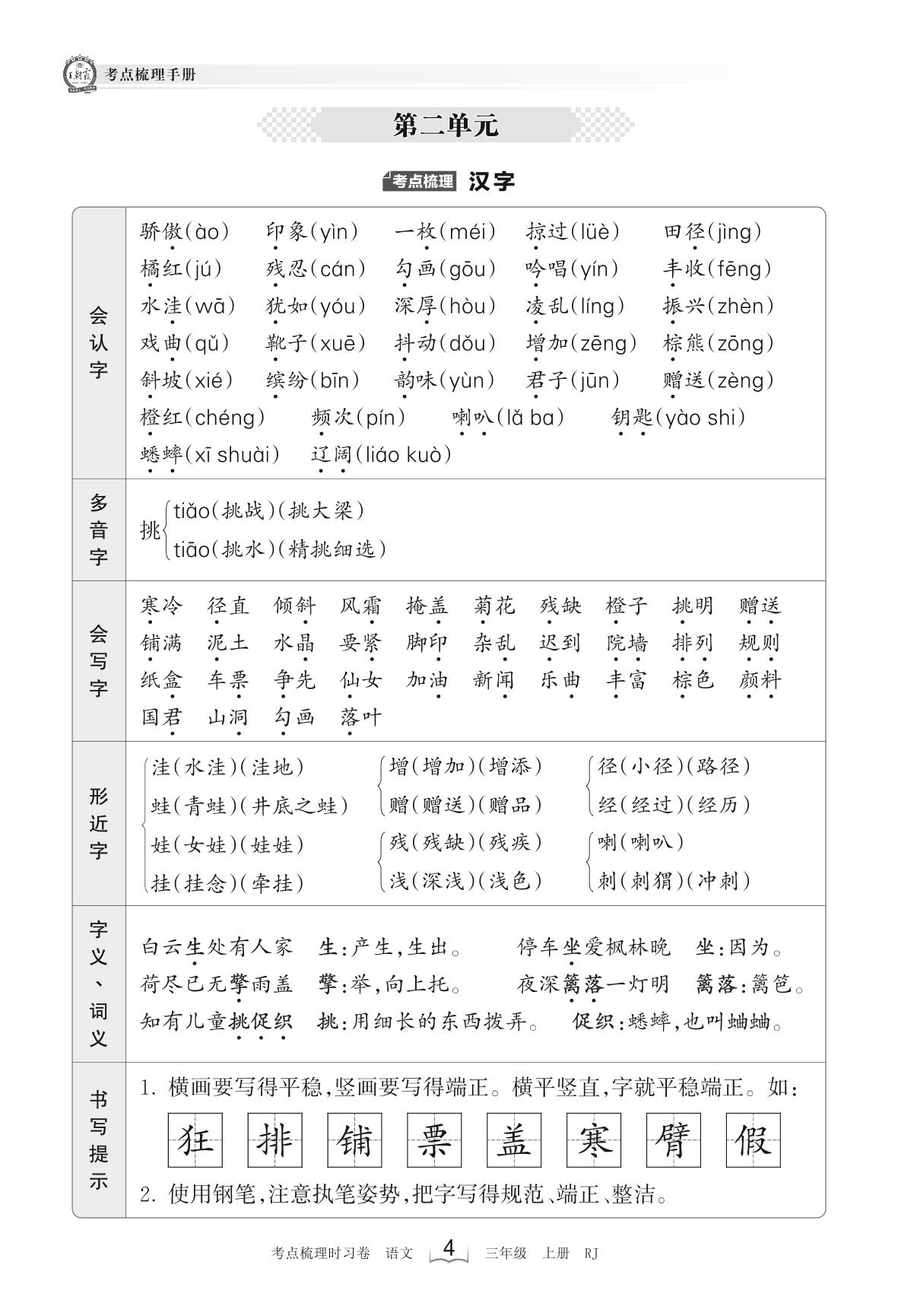 2023上册三年级语文人教版 考点梳理手册——第二单元