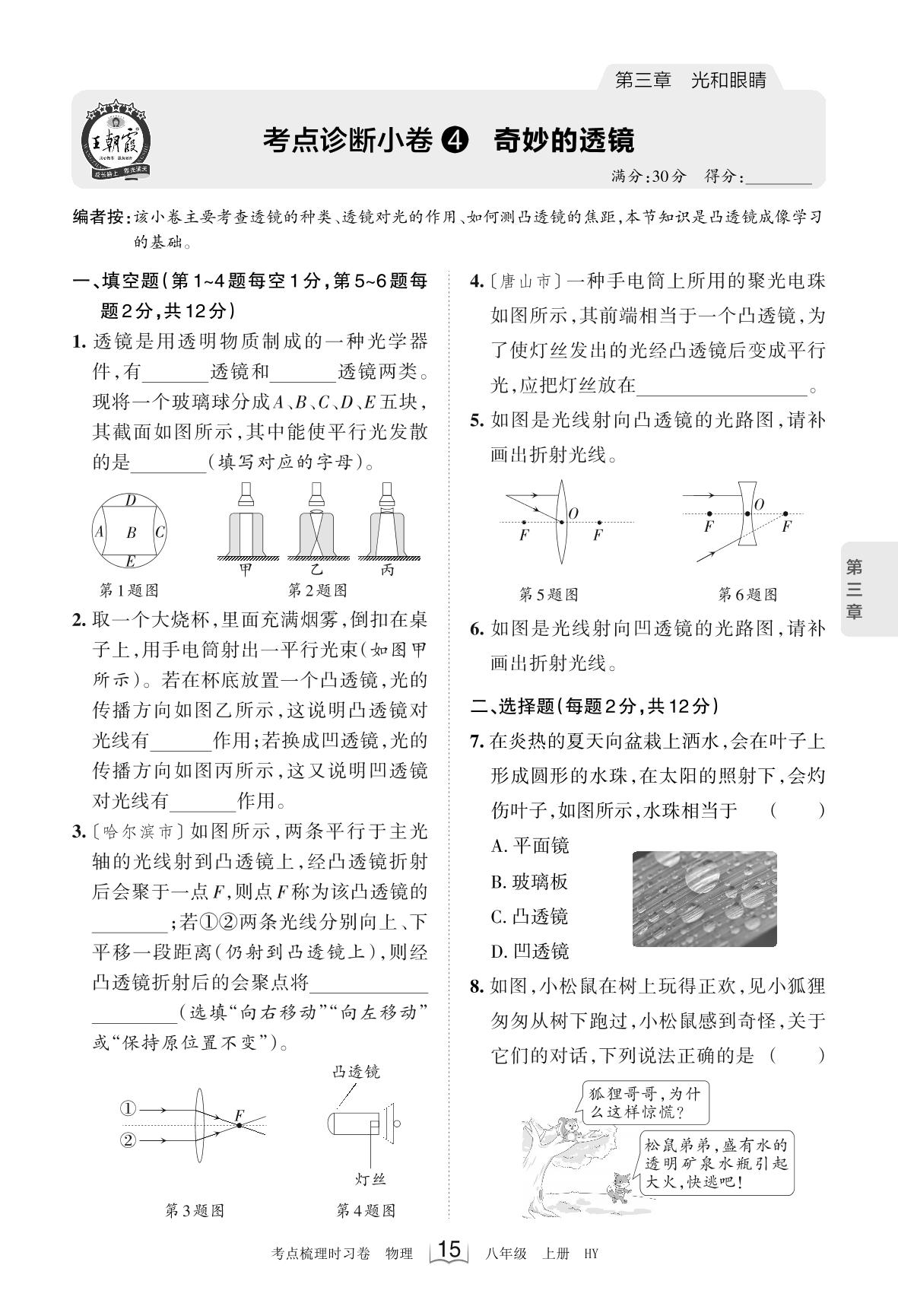 2023上册八年级物理沪粤版 第三章 考点诊断小卷4 奇妙的透镜