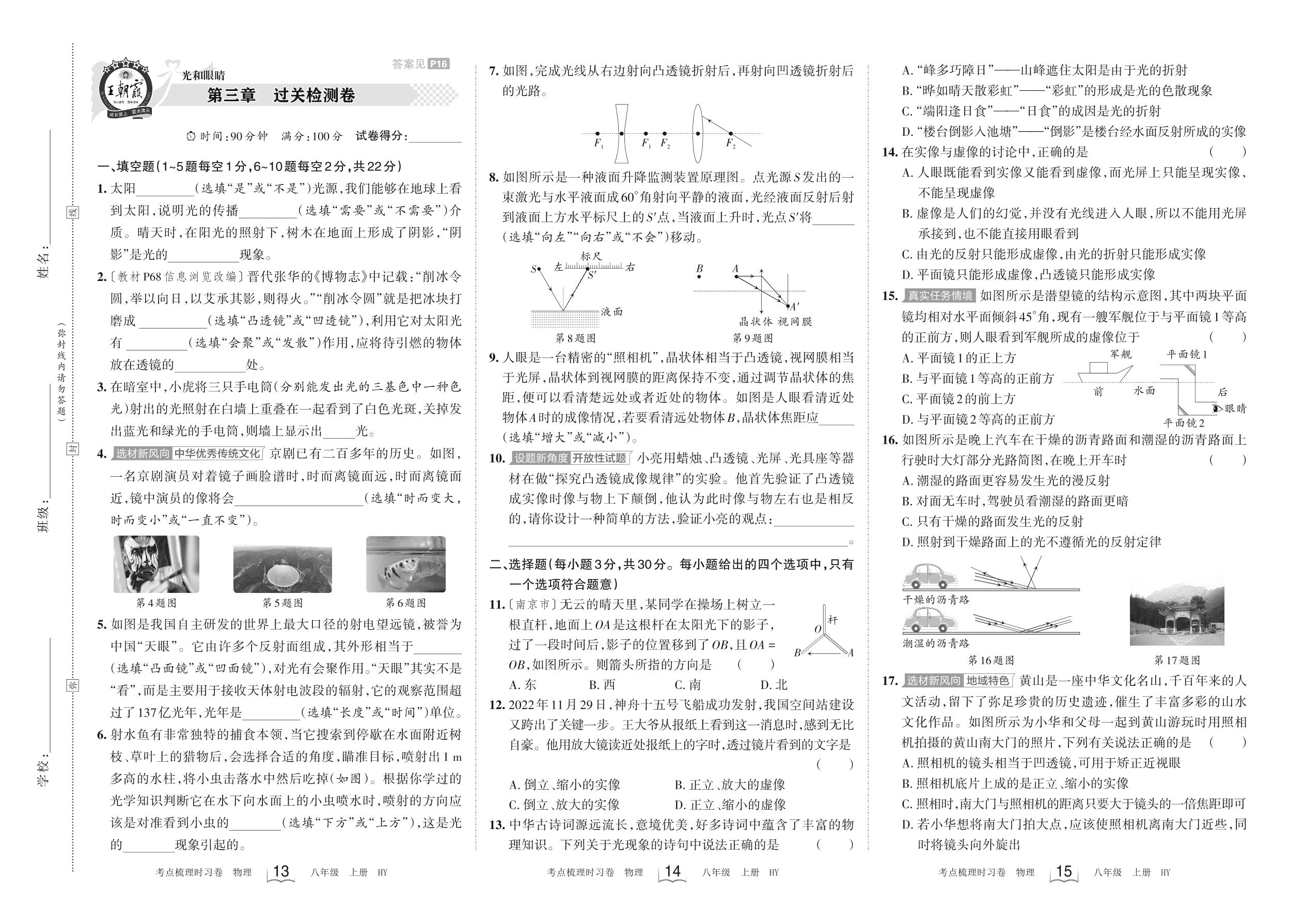 2023上册八年级物理沪粤版 第三章 过关检测卷