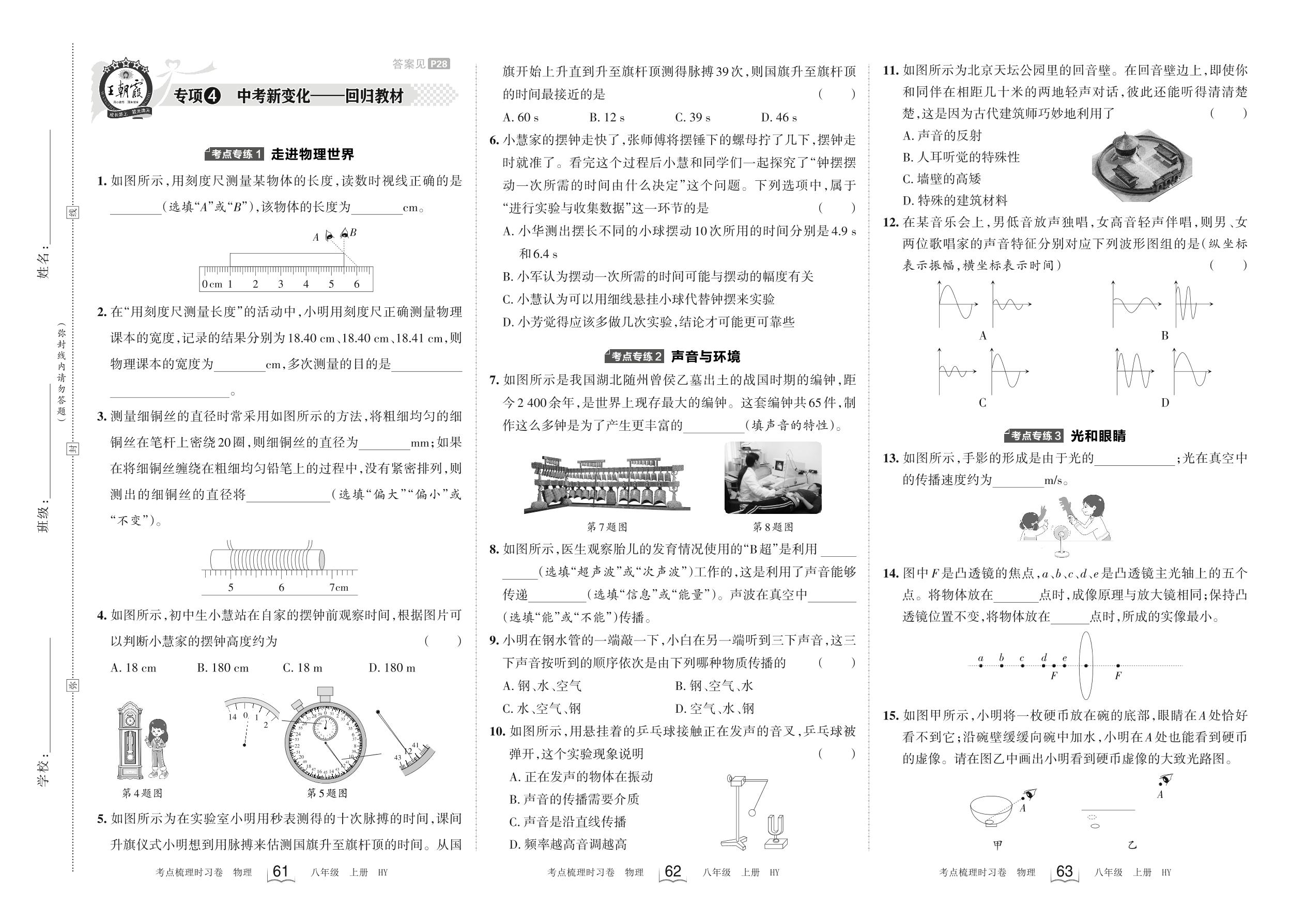 2023上册八年级物理沪粤版 专项4 中考新变化——回归教材
