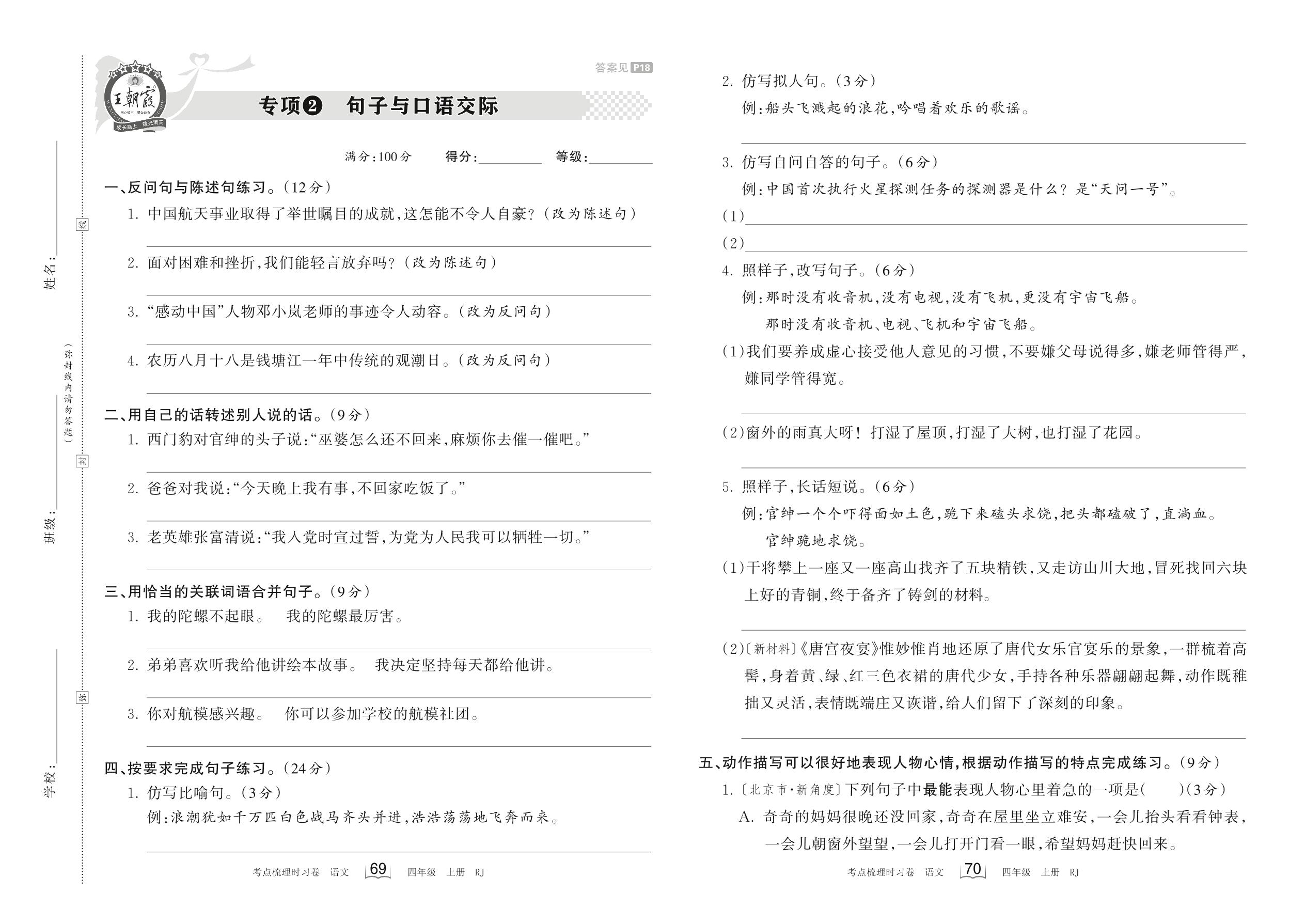 2023上册四年级语文人教版 专项2 句子与口语交际