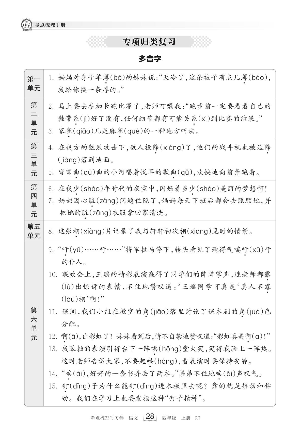2023上册四年级语文人教版 考点梳理手册——专项归类复习