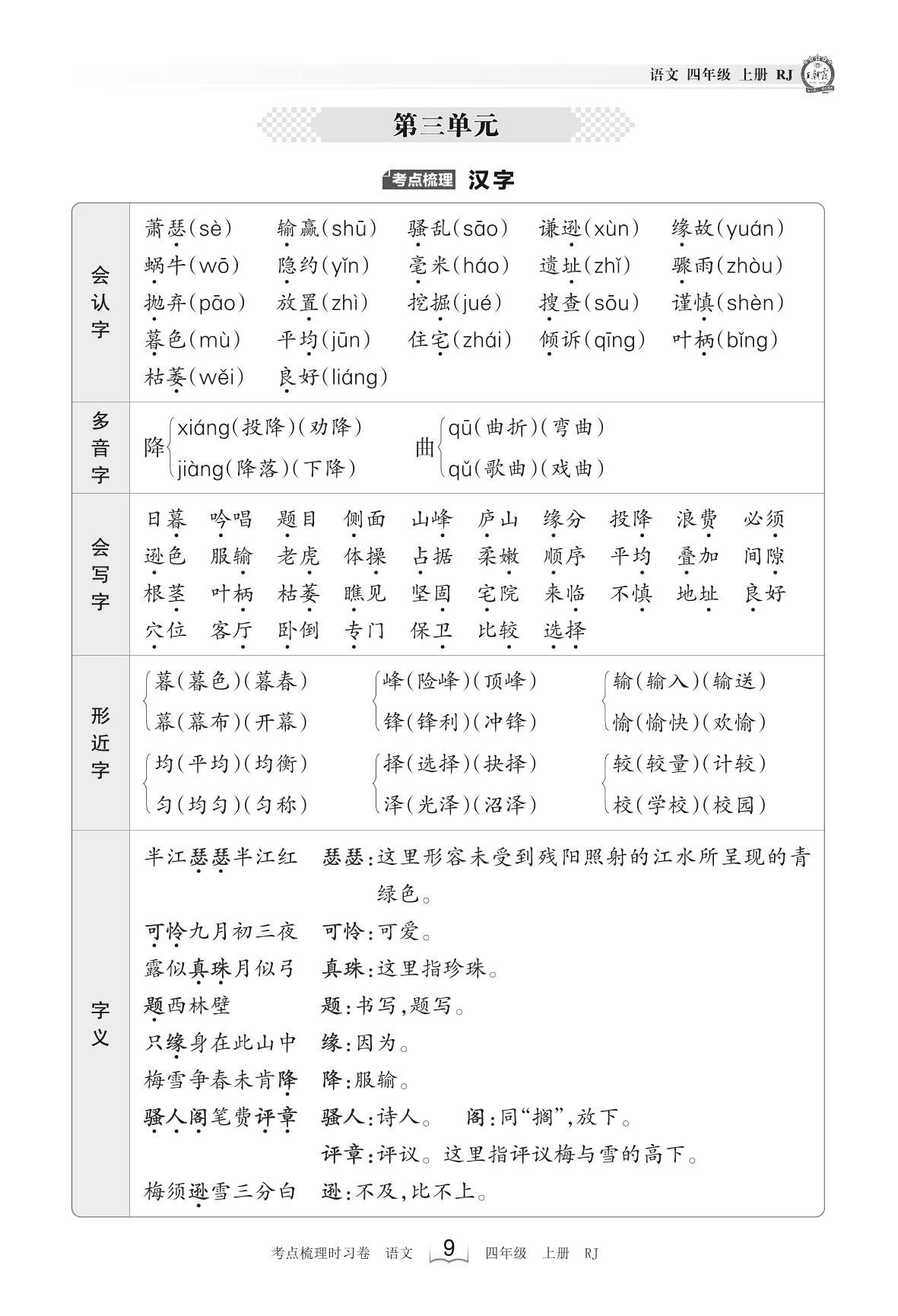 2023上册四年级语文人教版 考点梳理手册——第三单元