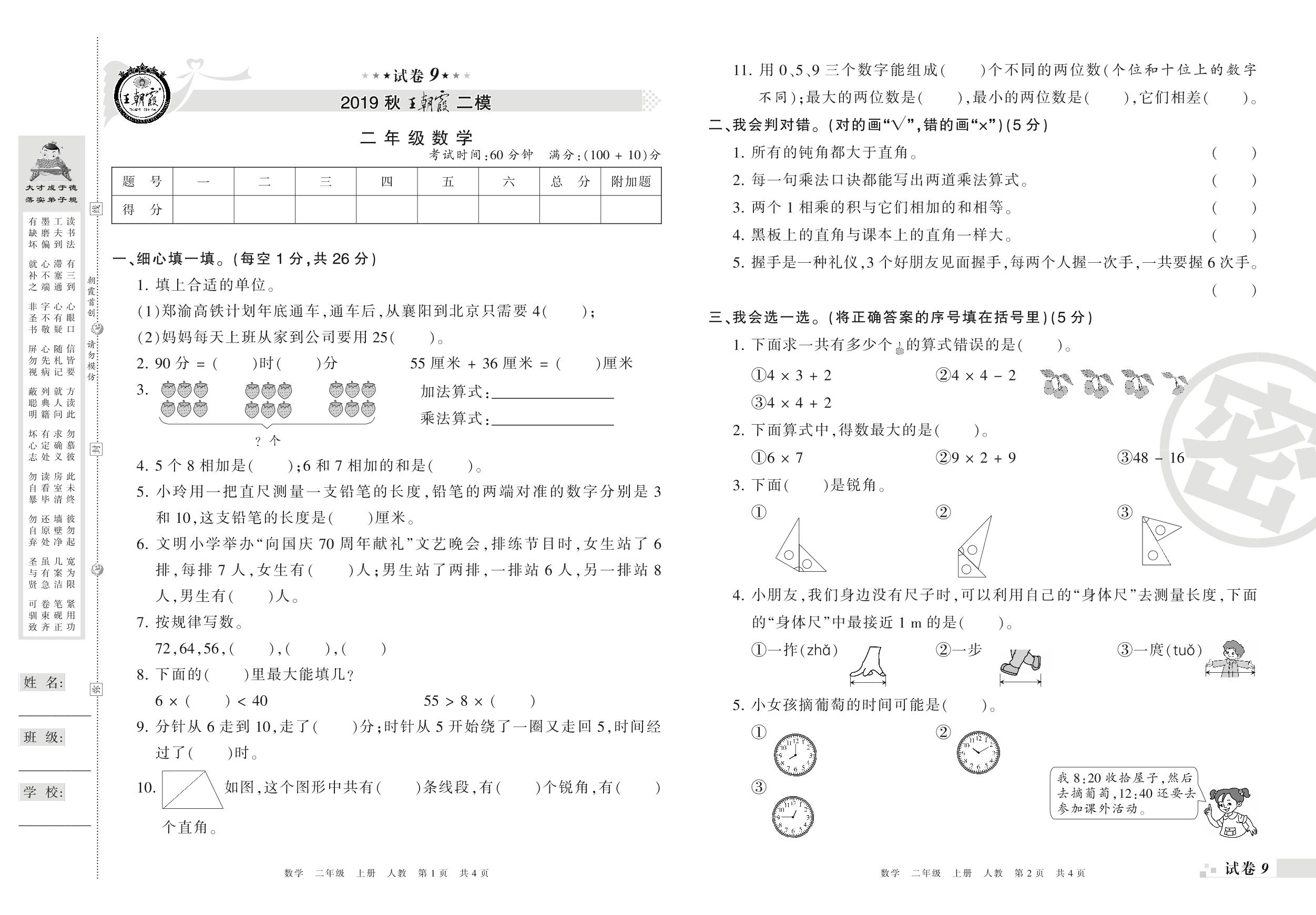 王朝霞期末模拟卷二年级上册数学(人教版)_R21080393225【9】