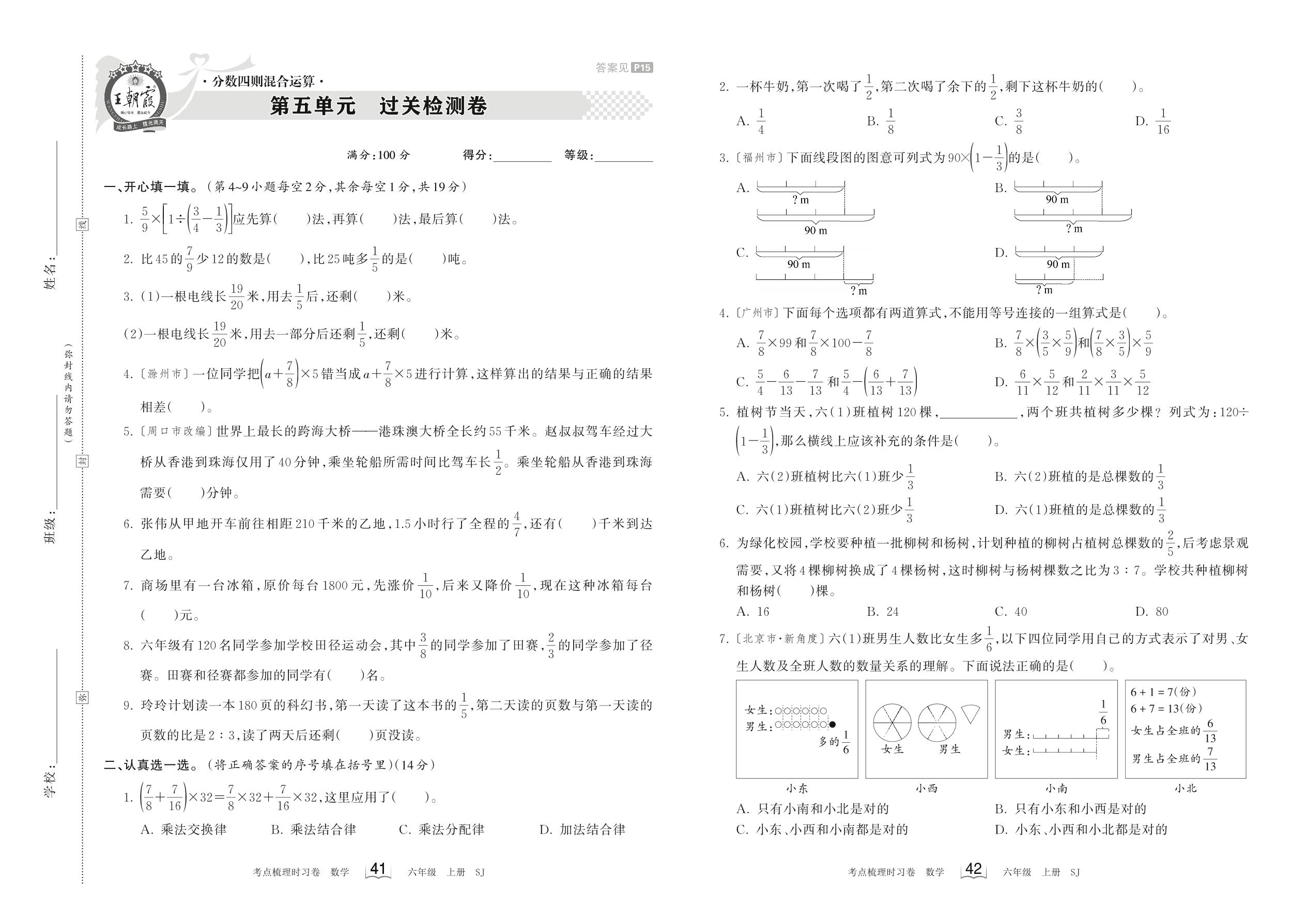 2023上册六年级数学苏教版 第五单元 过关检测卷